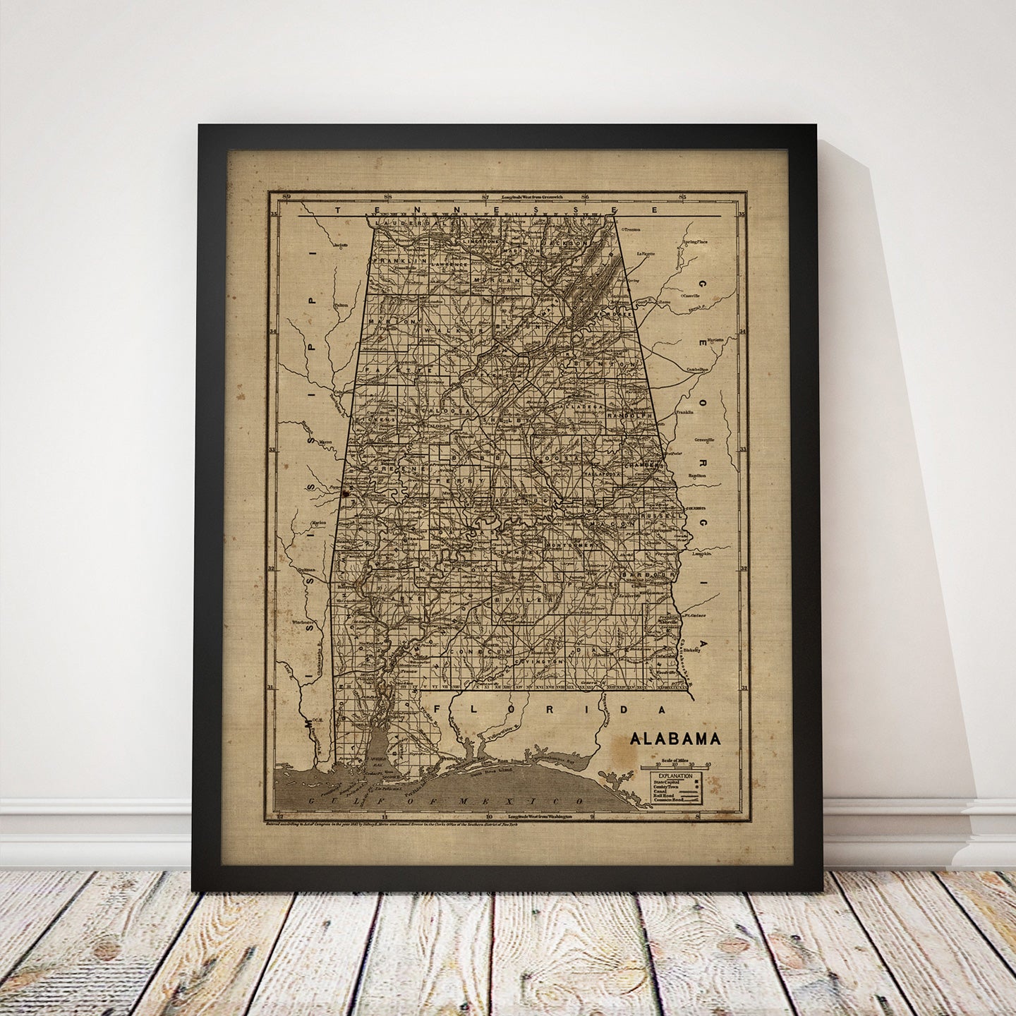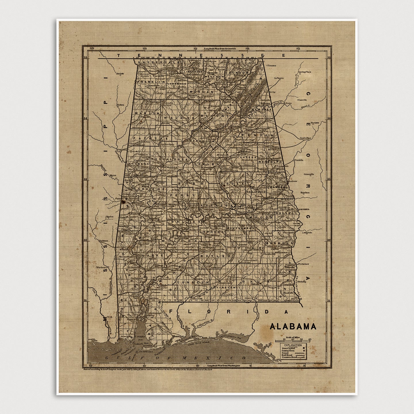 Archival print reproduction of an antique map of Alabama from 1842 by Sidney Morse and Samuel Breese.