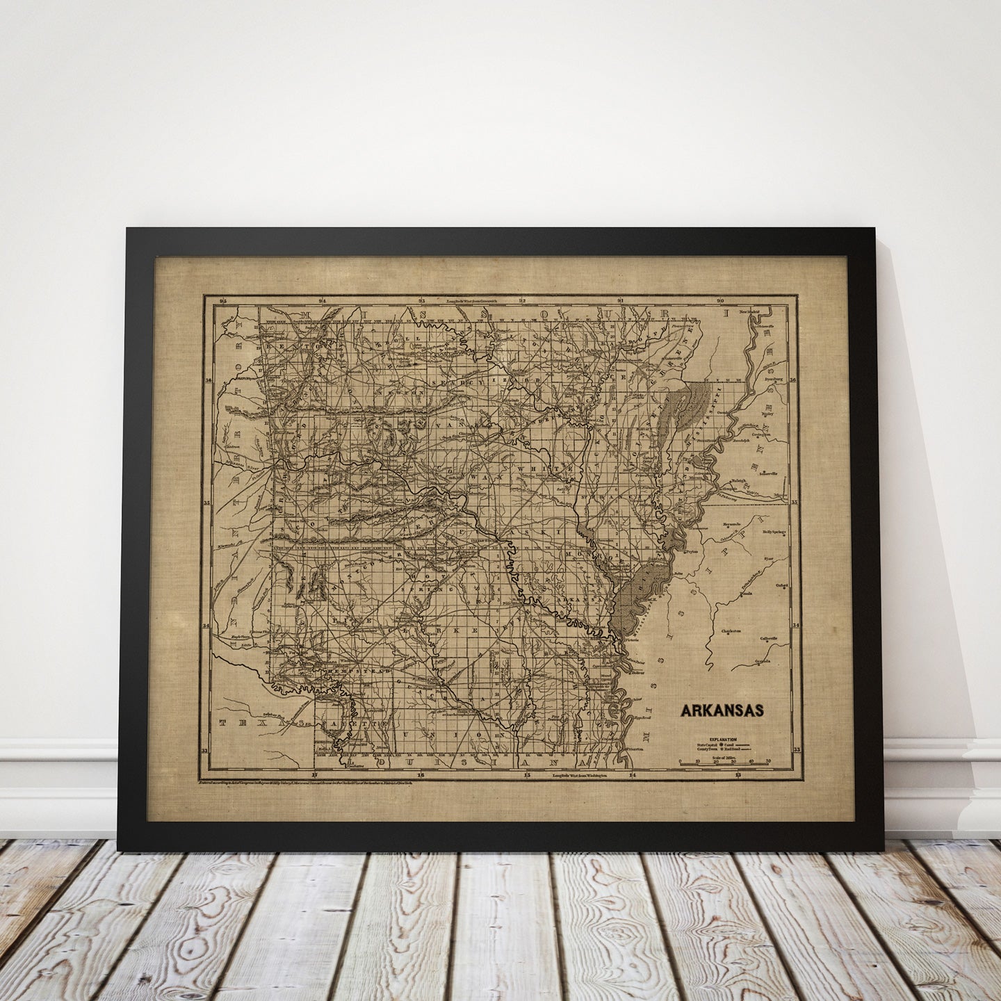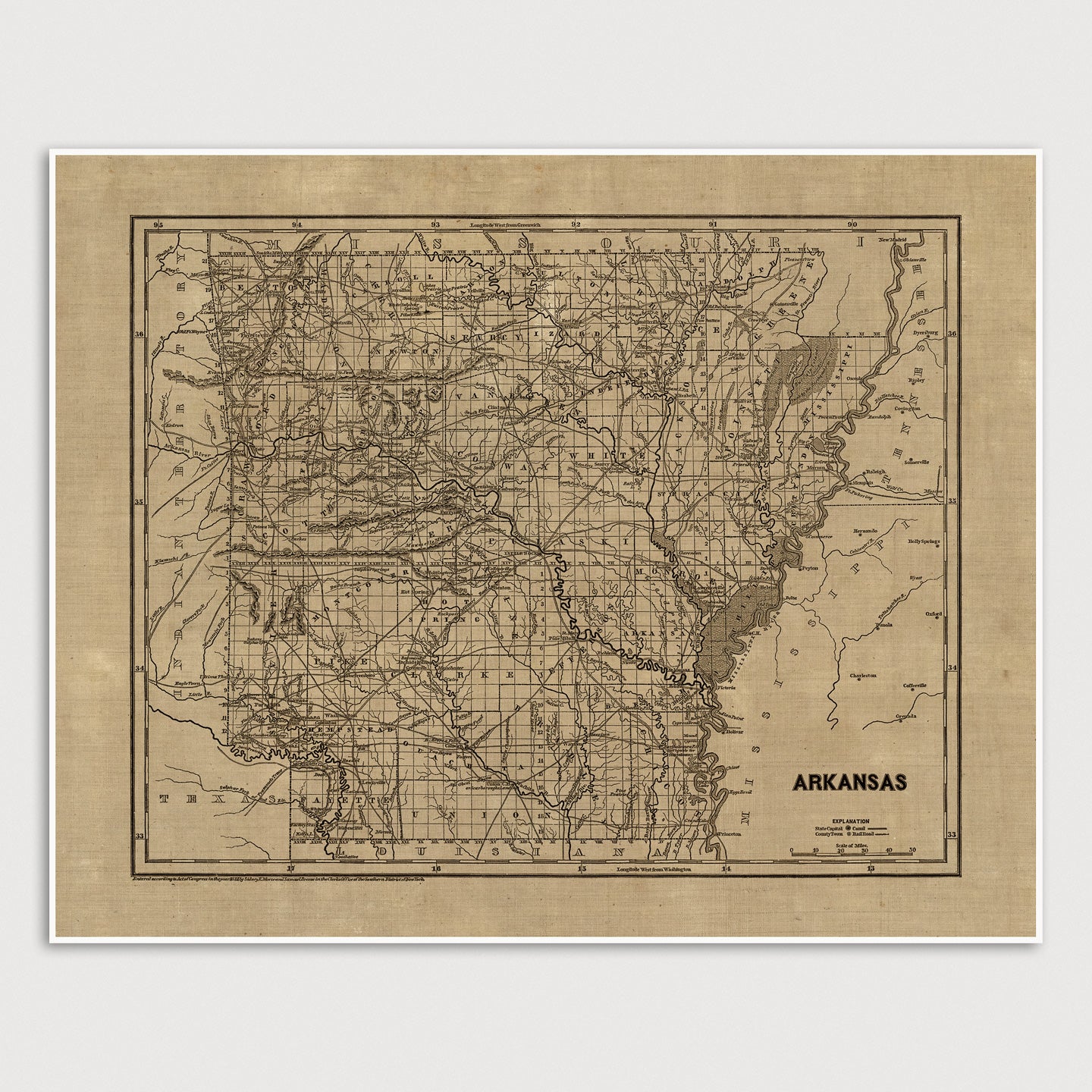 Archival print reproduction of an antique map of Arkansas from 1842 by Sidney Morse and Samuel Breese.
