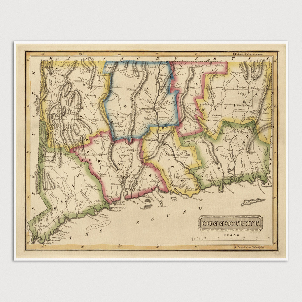 Connecticut Antique Map Print (c1817)
