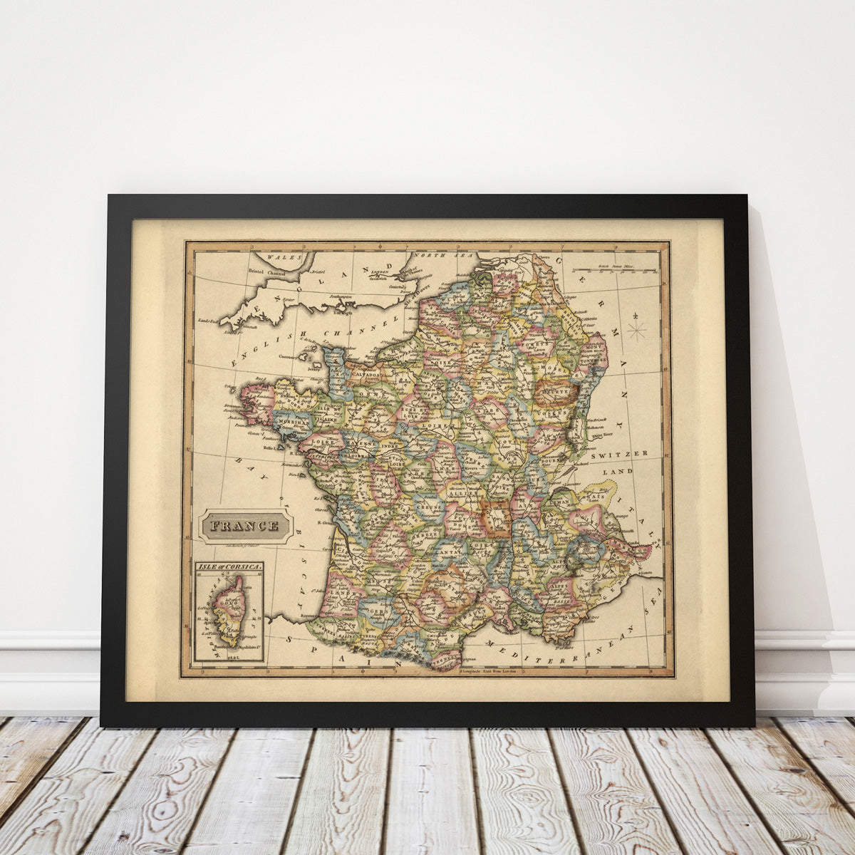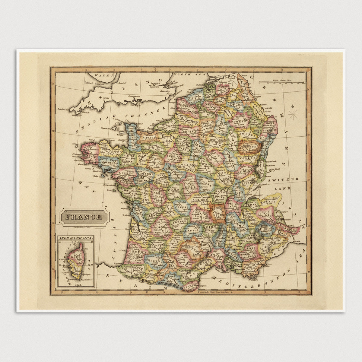 Archival print reproduction of an antique map of France from c1817 by Fielding Lucas.