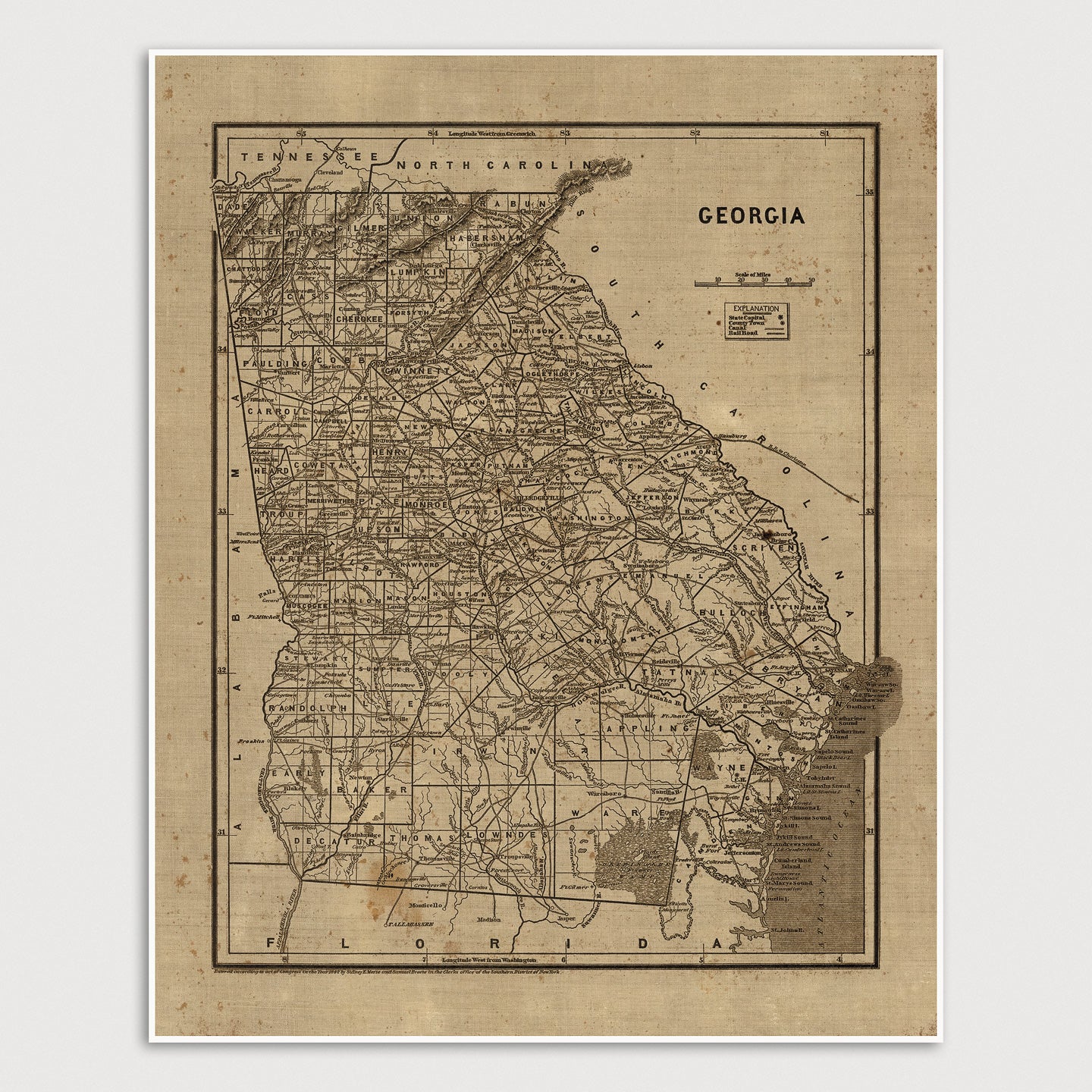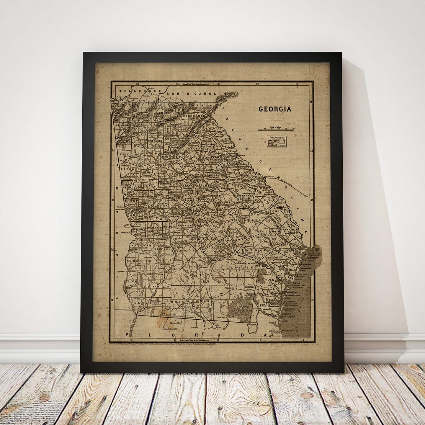 Archival print reproduction of an antique map of Georgia from 1842 by Sidney Morse and Samuel Breese.