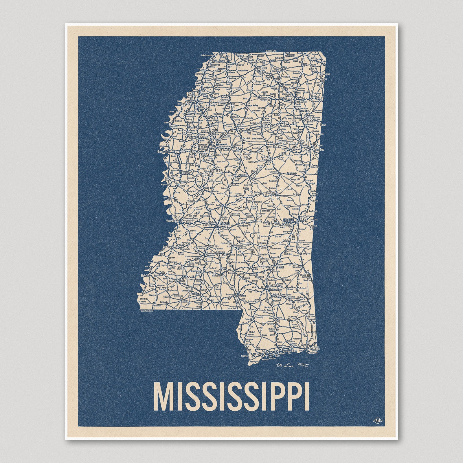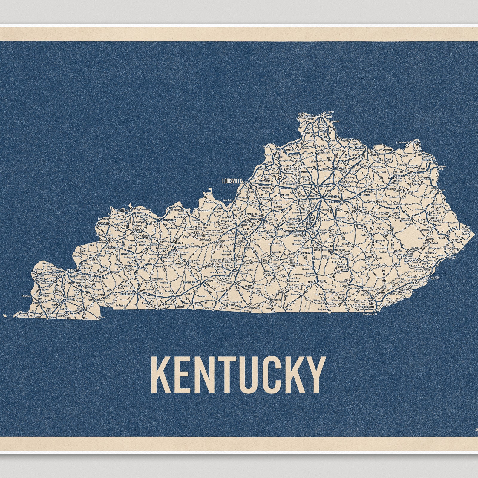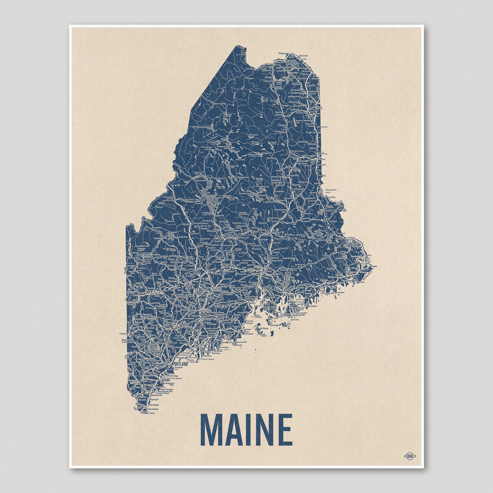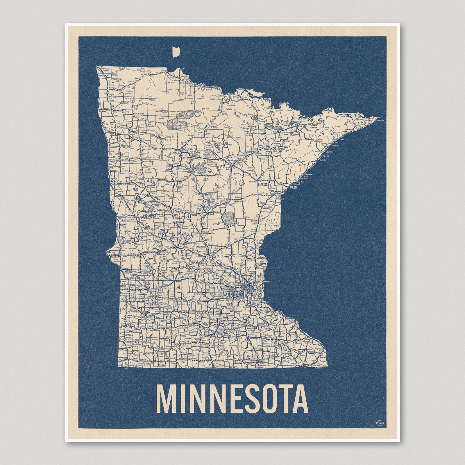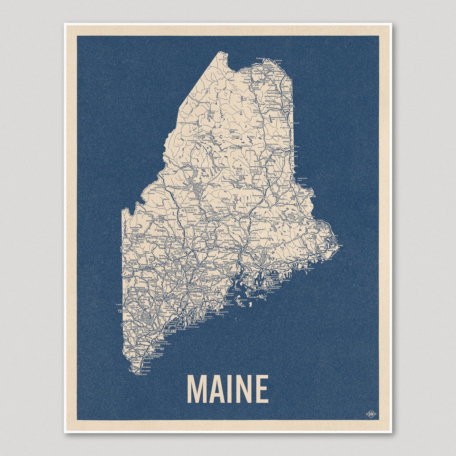 These map prints are a kind of hybrid of old and new, vintage and modern. The details are based on a 1930s highway maps, but the presentation is much more modern (almost minimalist) with bold use of only two colors – beige and dark blue – to make the state pop out of its frame. At the same time, these two colors evoke a more traditional, almost rustic style that works well in most styles of home decor.
