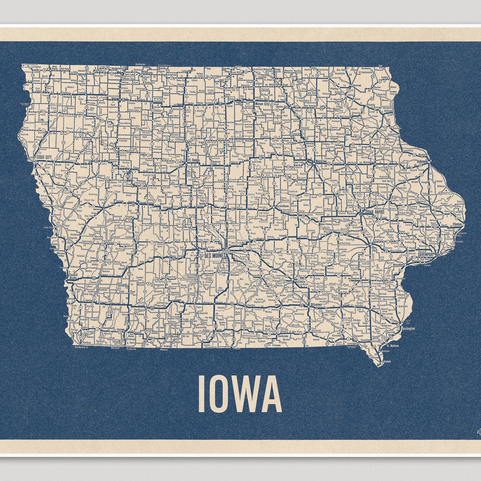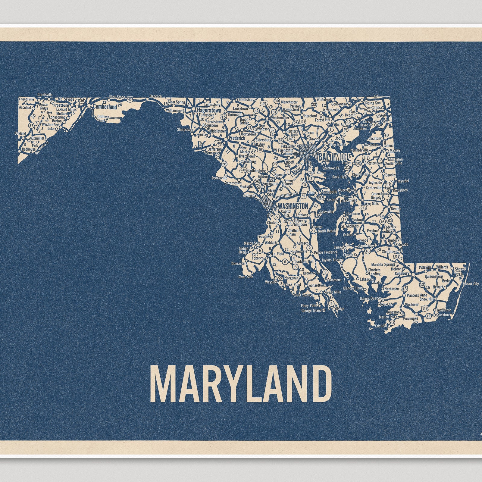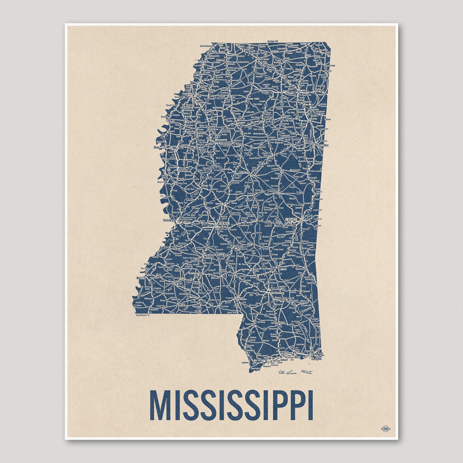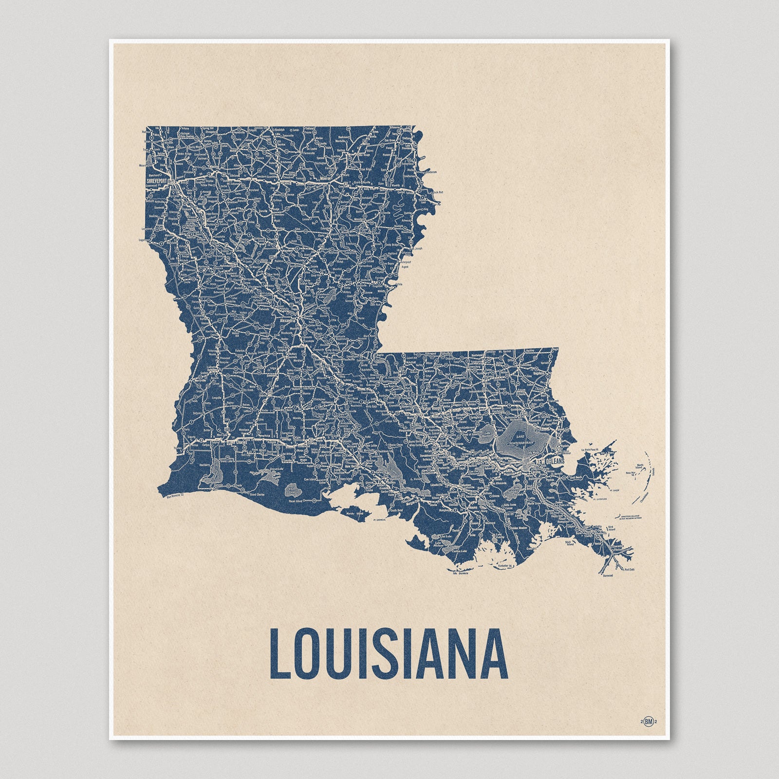 These map prints are a kind of hybrid of old and new, vintage and modern. The details are based on a 1930s highway maps, but the presentation is much more modern (almost minimalist) with bold use of only two colors – beige and dark blue – to make the state pop out of its frame. At the same time, these two colors evoke a more traditional, almost rustic style that works well in most styles of home decor.