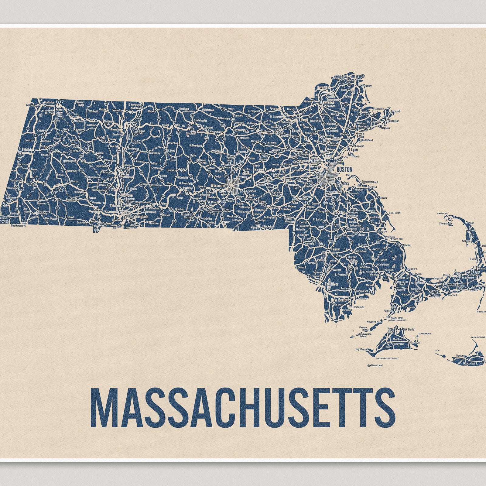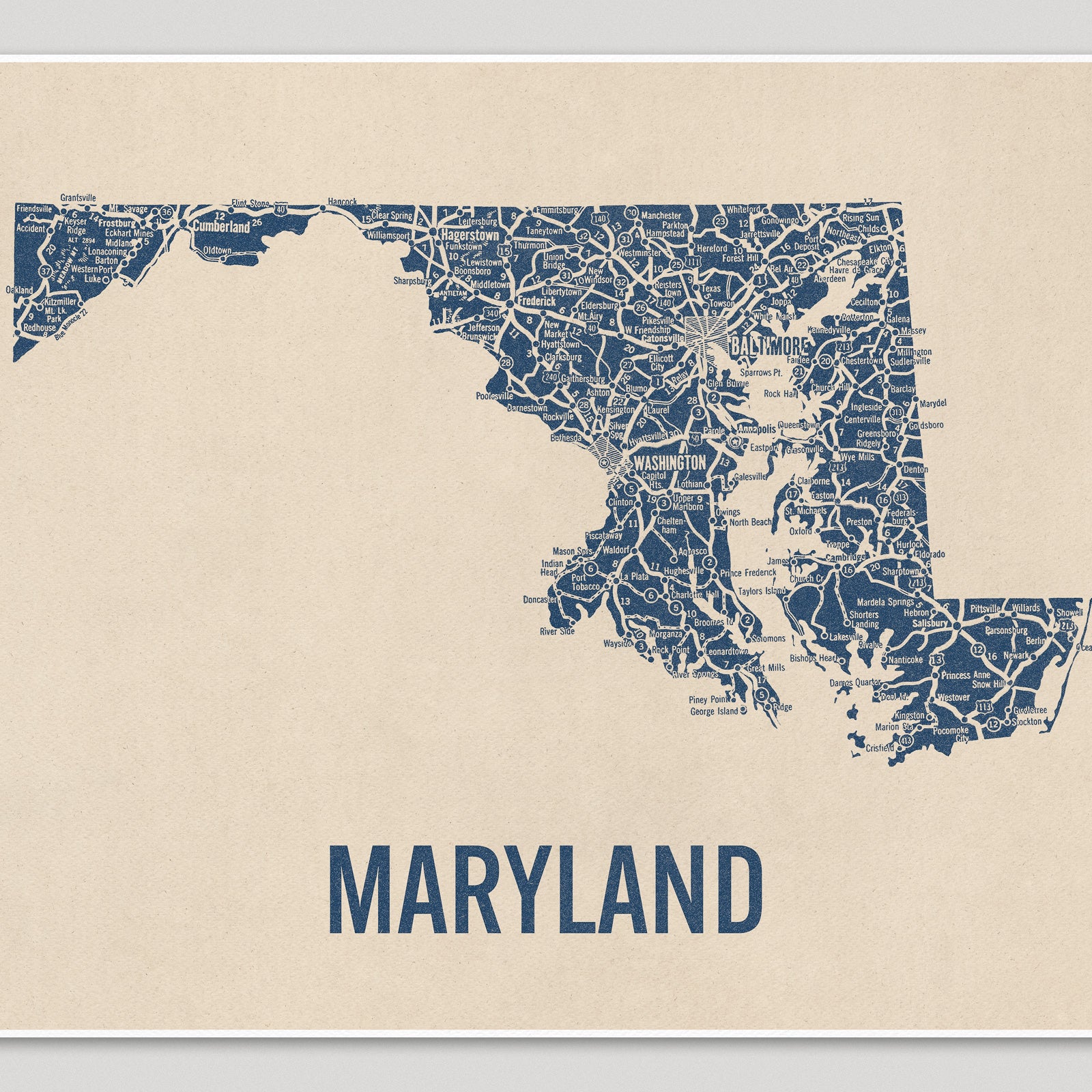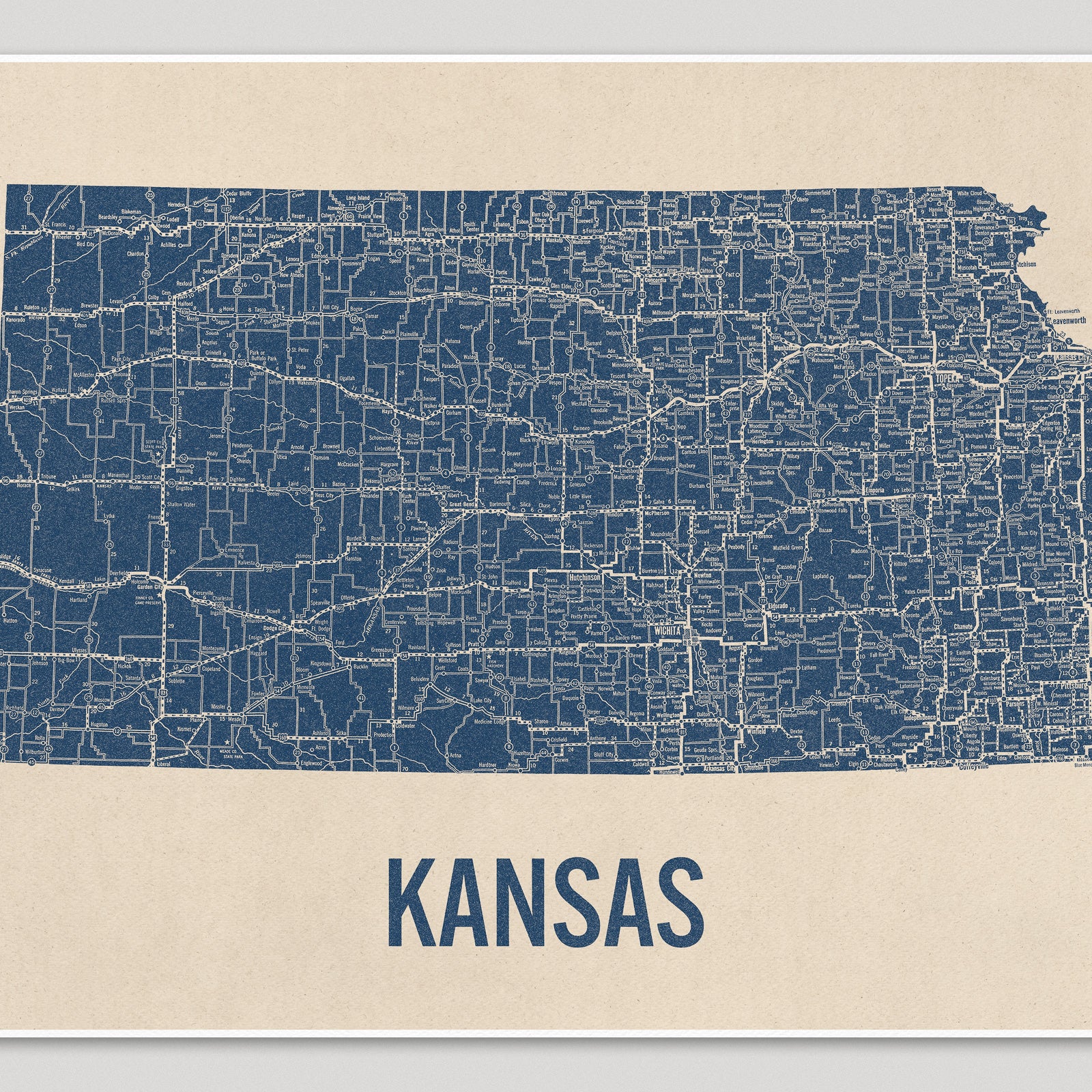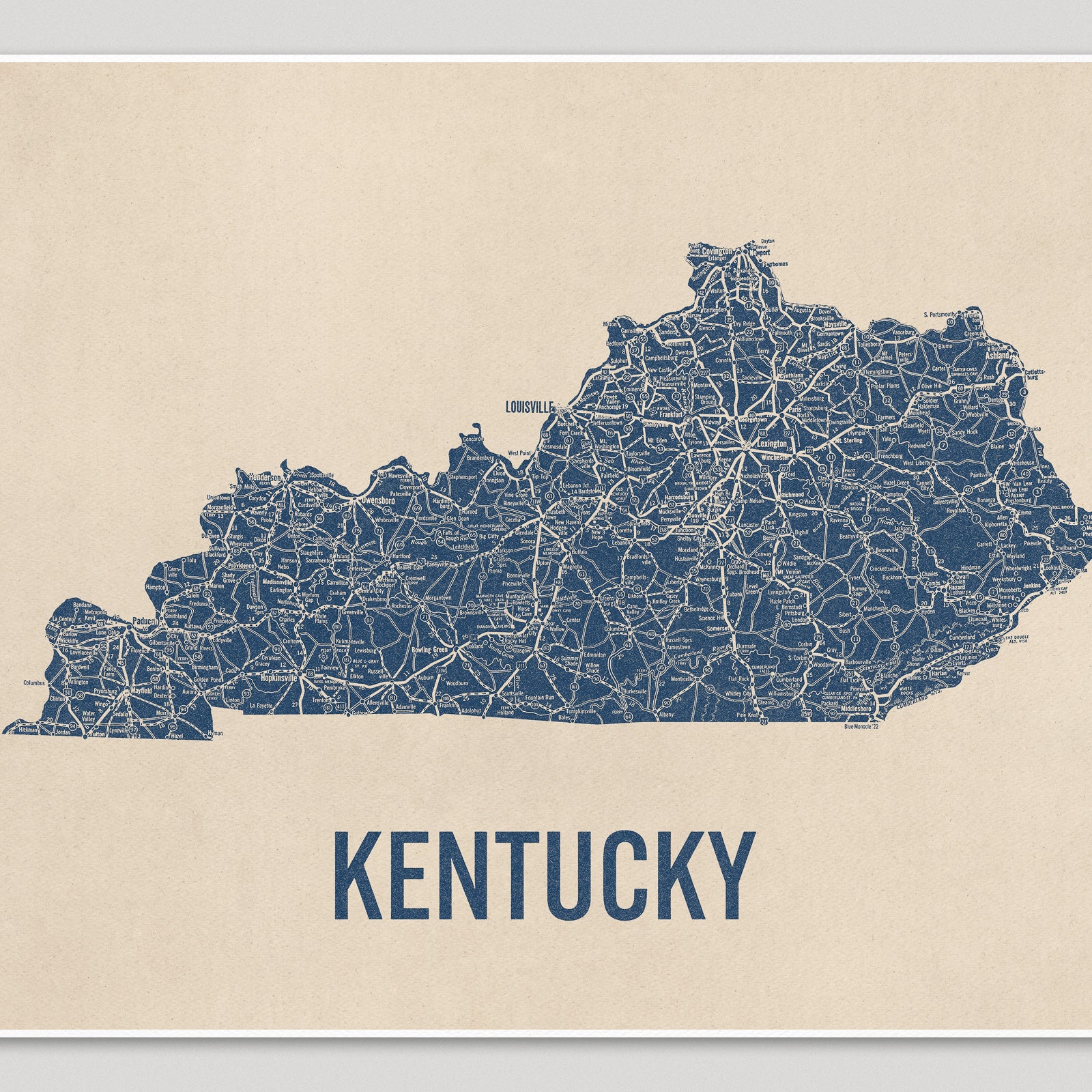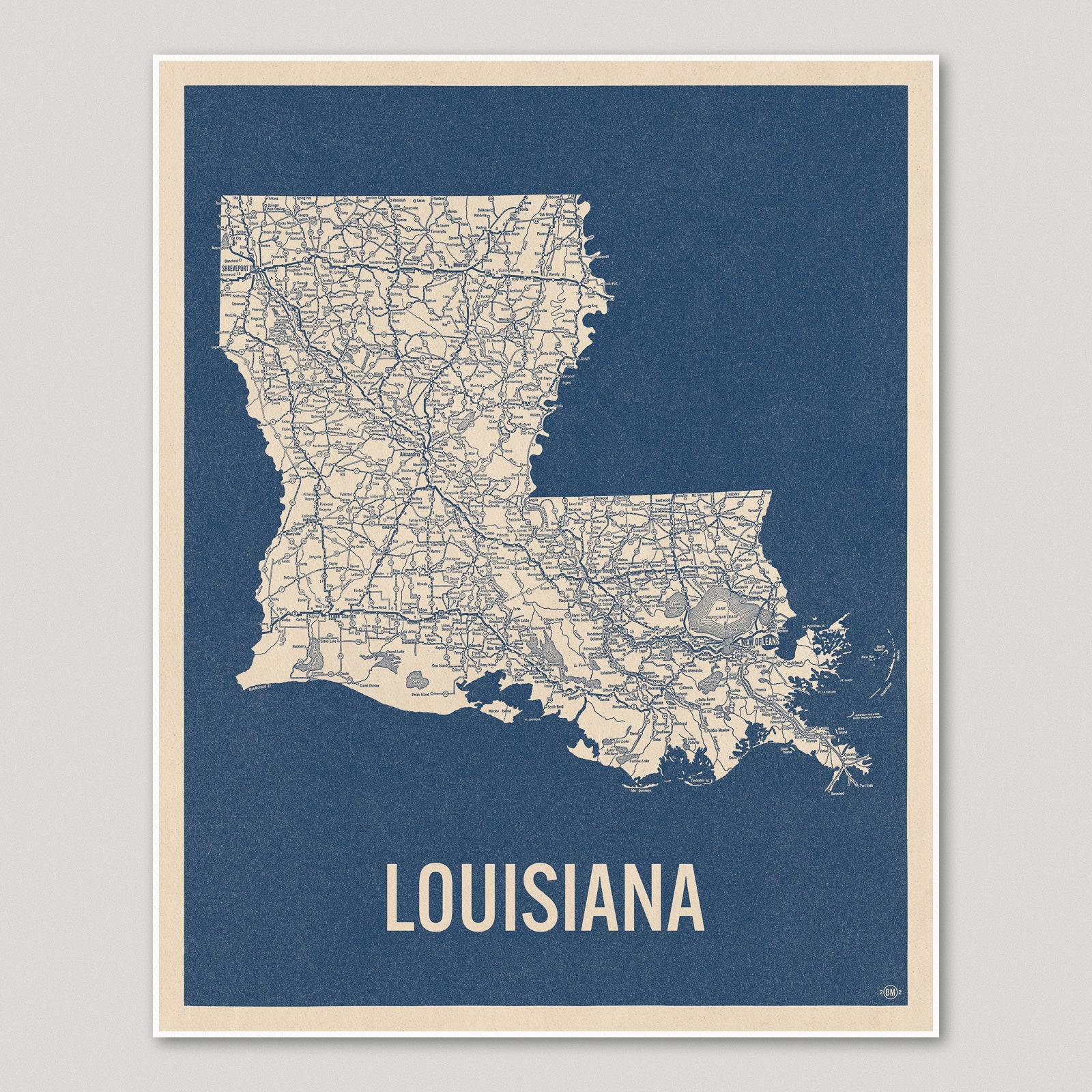 These map prints are a kind of hybrid of old and new, vintage and modern. The details are based on a 1930s highway maps, but the presentation is much more modern (almost minimalist) with bold use of only two colors – beige and dark blue – to make the state pop out of its frame. At the same time, these two colors evoke a more traditional, almost rustic style that works well in most styles of home decor.