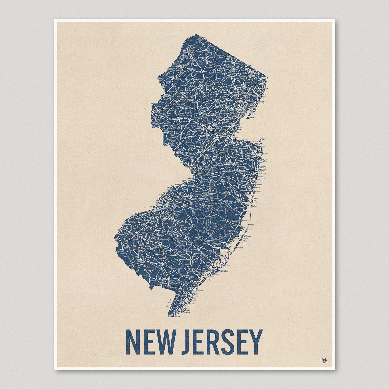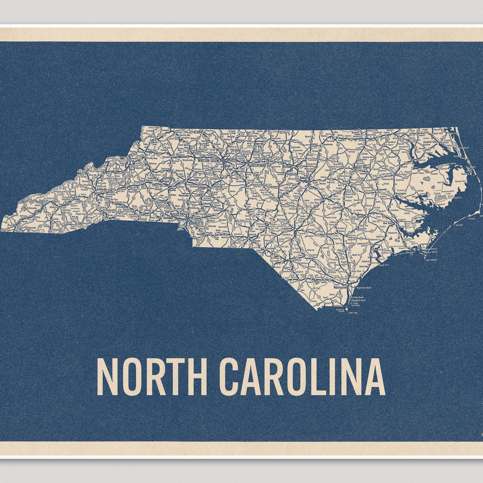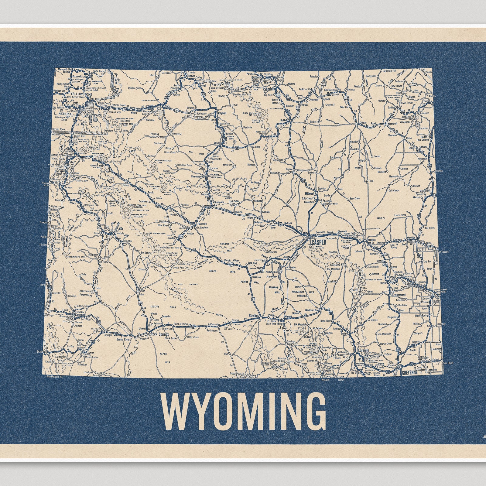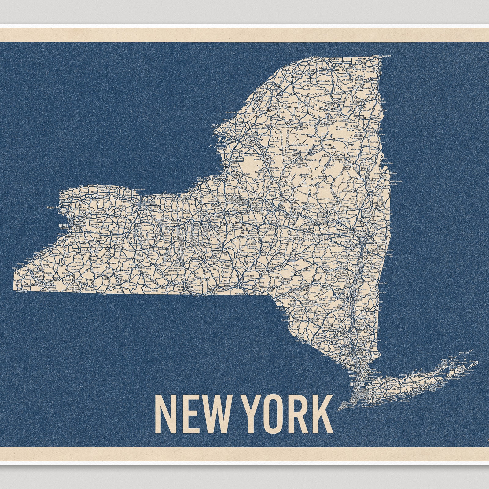 These map prints are a kind of hybrid of old and new, vintage and modern. The details are based on a 1930s highway maps, but the presentation is much more modern (almost minimalist) with bold use of only two colors – beige and dark blue – to make the state pop out of its frame. At the same time, these two colors evoke a more traditional, almost rustic style that works well in most styles of home decor.