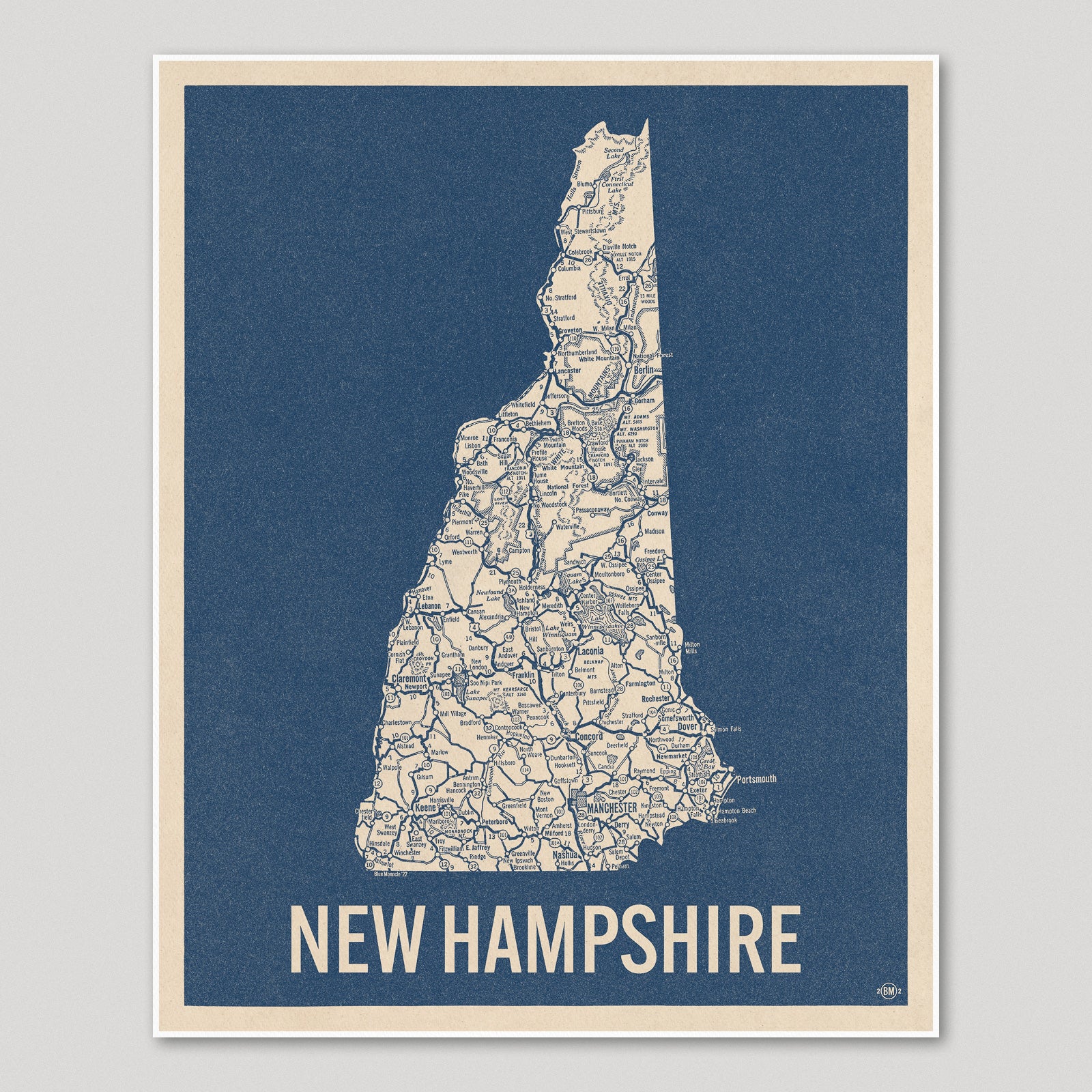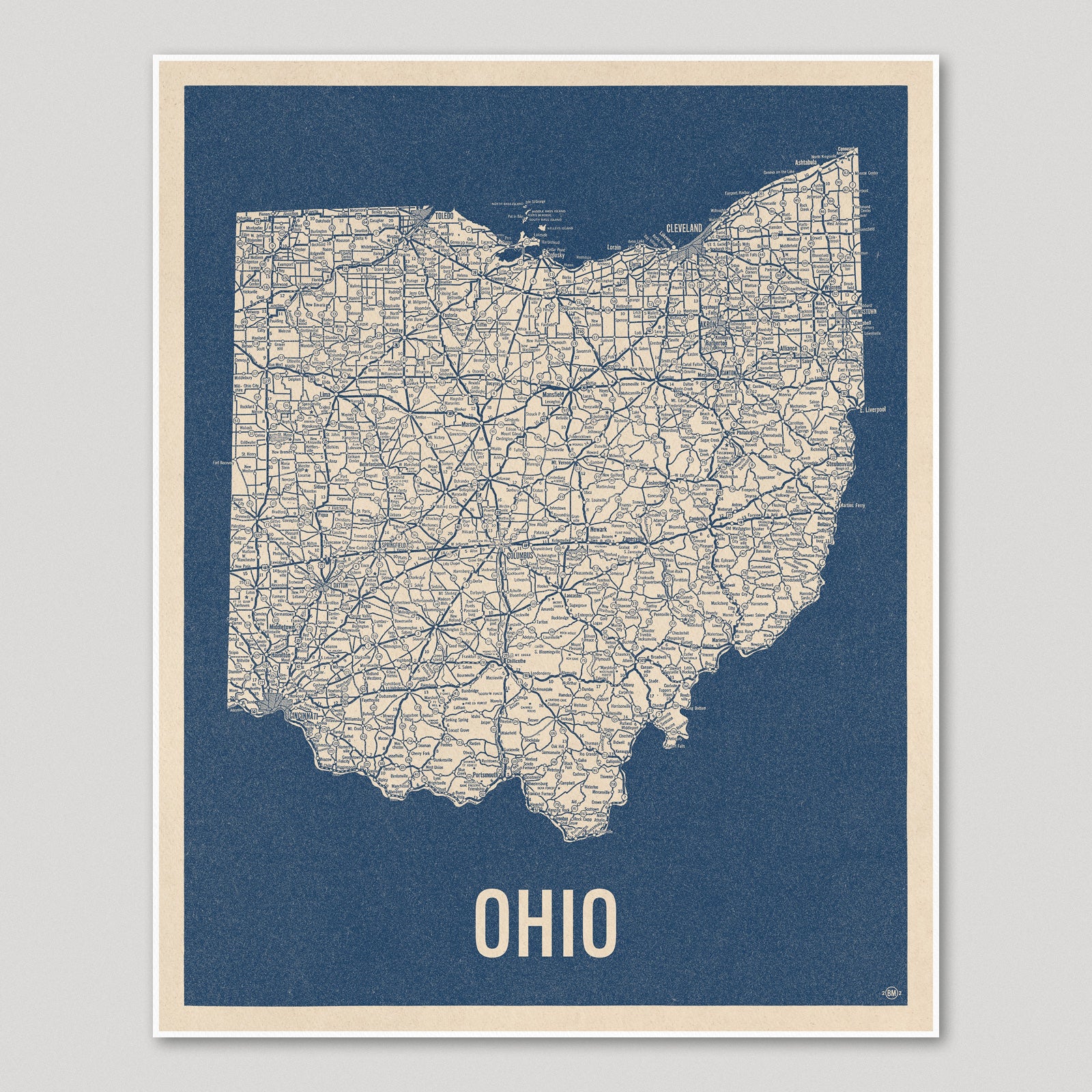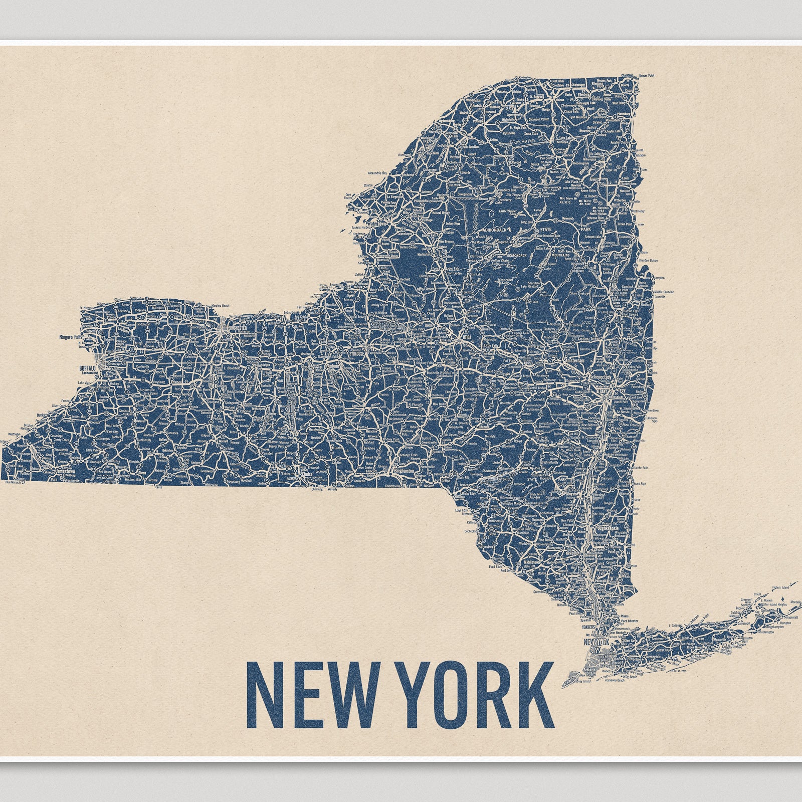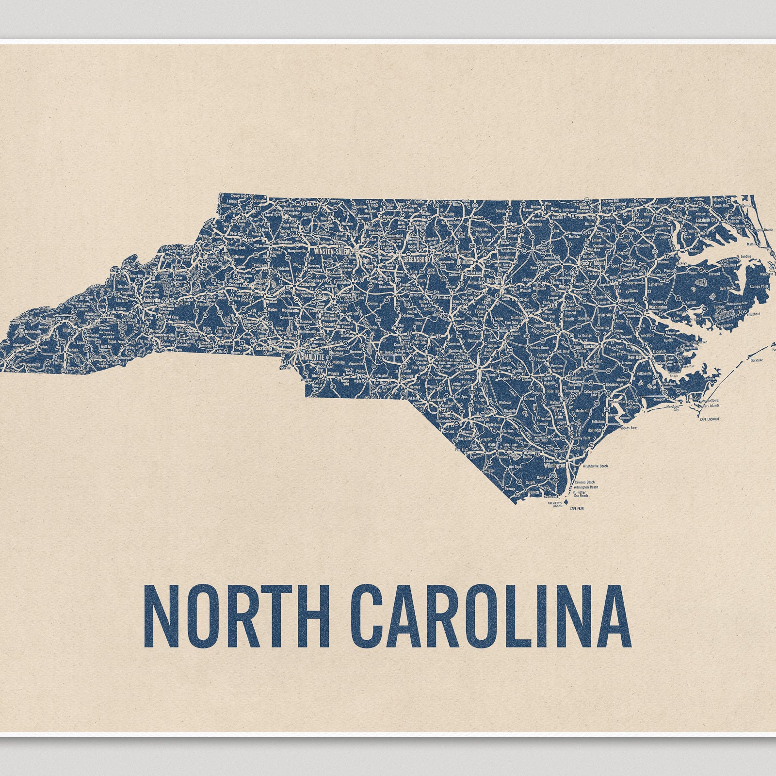 These map prints are a kind of hybrid of old and new, vintage and modern. The details are based on a 1930s highway maps, but the presentation is much more modern (almost minimalist) with bold use of only two colors – beige and dark blue – to make the state pop out of its frame. At the same time, these two colors evoke a more traditional, almost rustic style that works well in most styles of home decor.