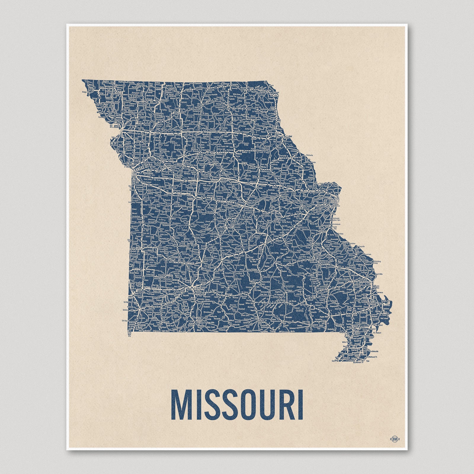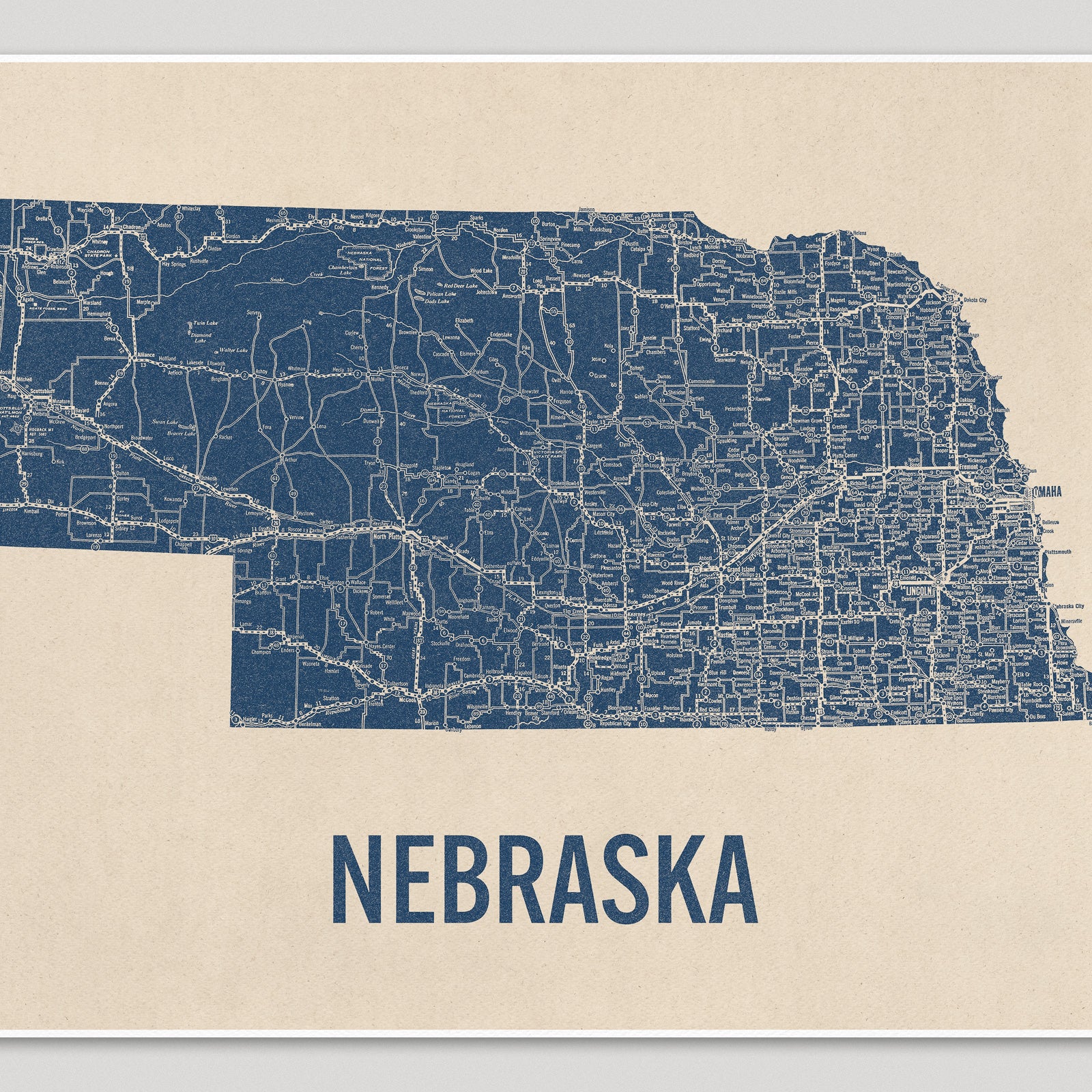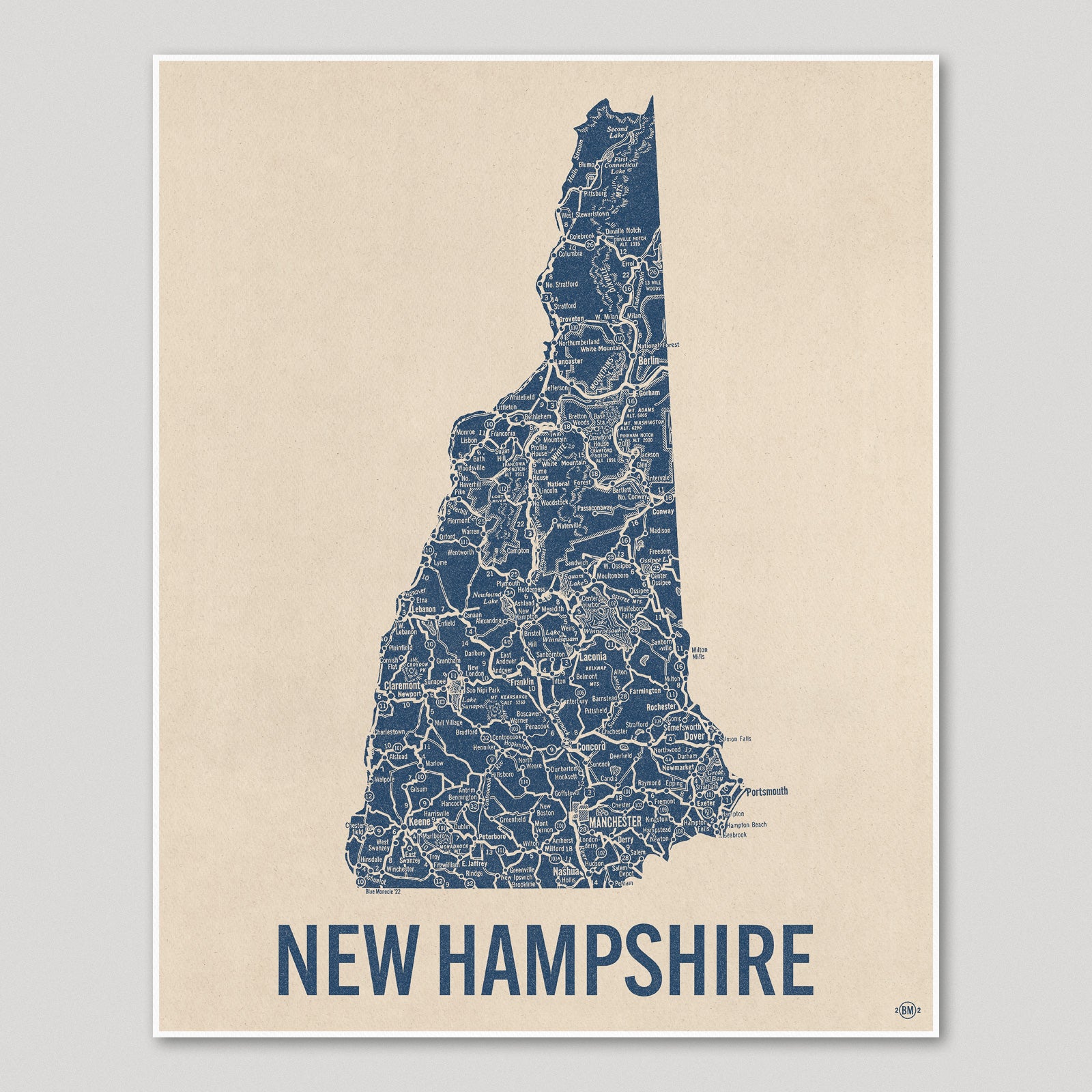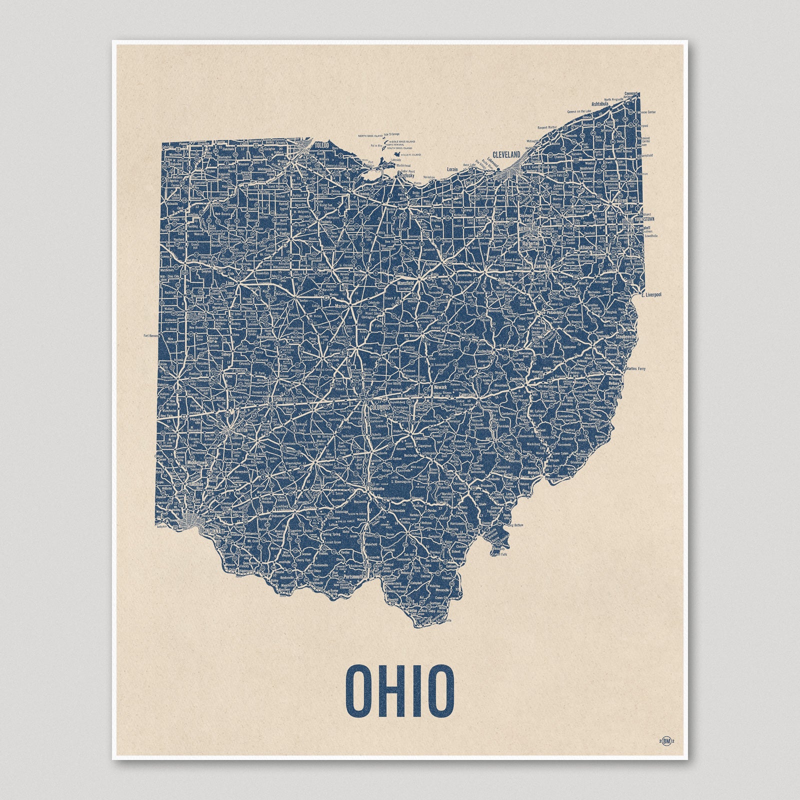 These map prints are a kind of hybrid of old and new, vintage and modern. The details are based on a 1930s highway maps, but the presentation is much more modern (almost minimalist) with bold use of only two colors – beige and dark blue – to make the state pop out of its frame. At the same time, these two colors evoke a more traditional, almost rustic style that works well in most styles of home decor.