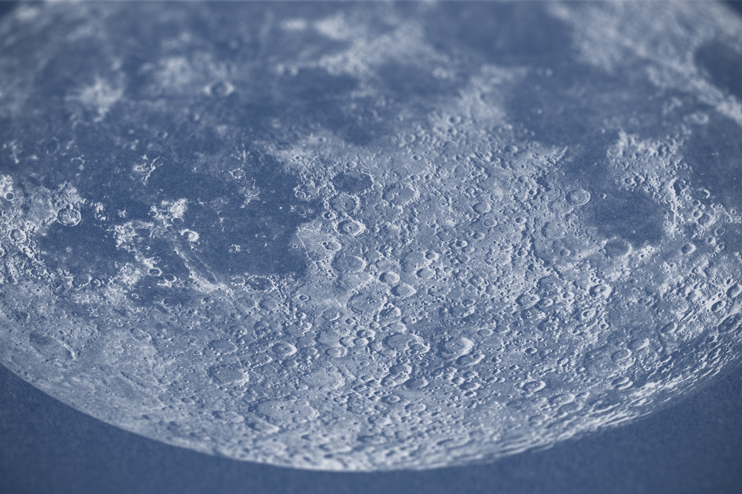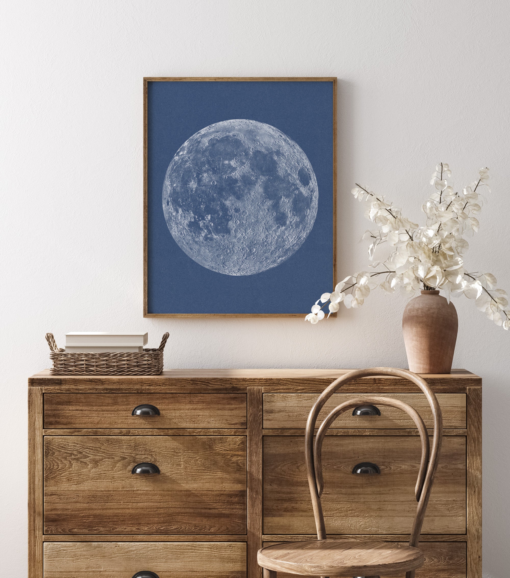 Archival art print of the full moon based on 1960s data from the US Geological Survey.
