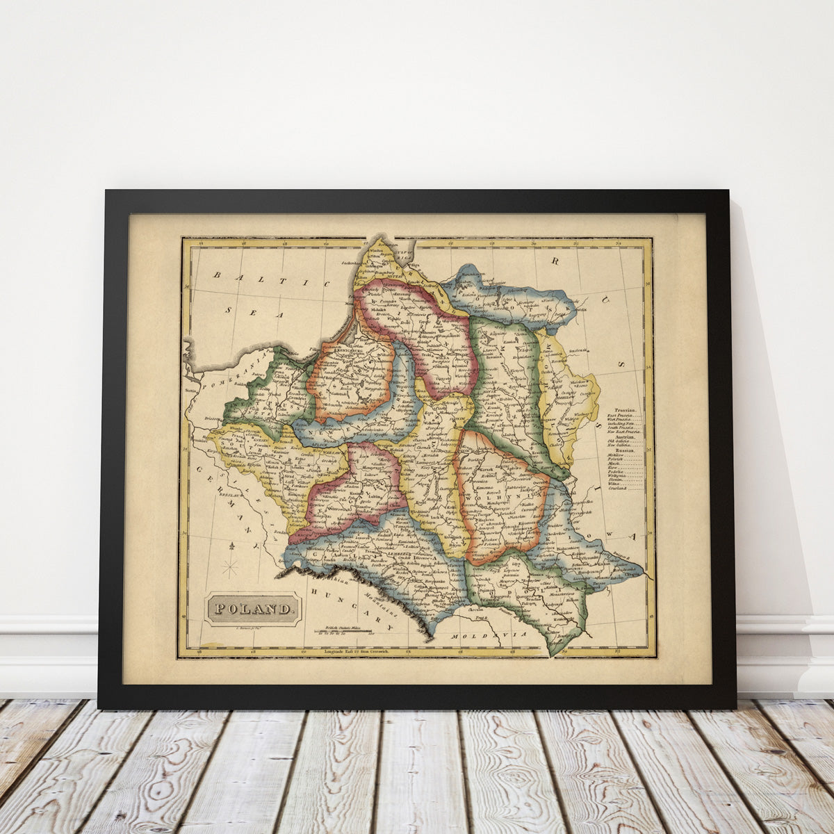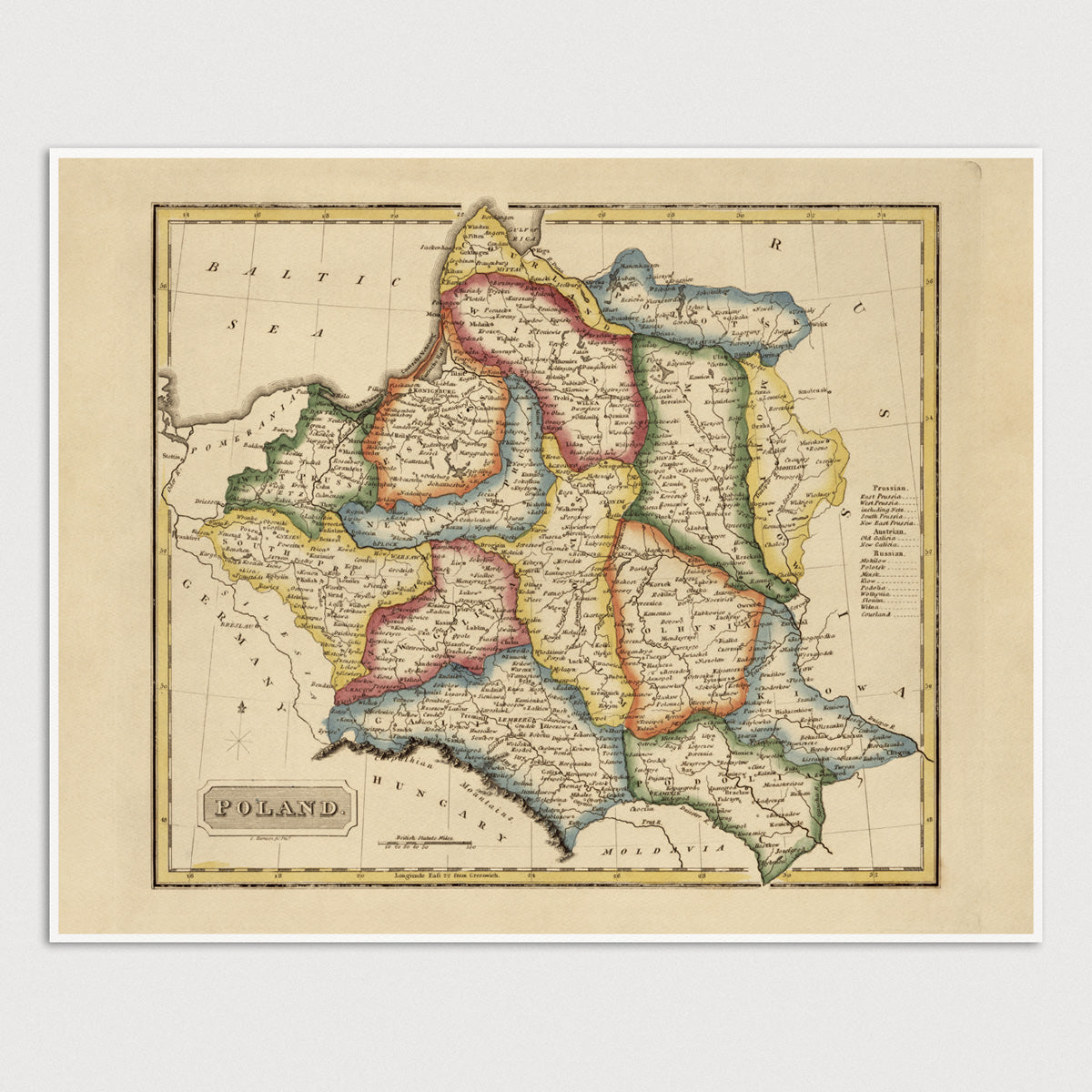 Archival print reproduction of an antique map of Poland from c1817 by Fielding Lucas.