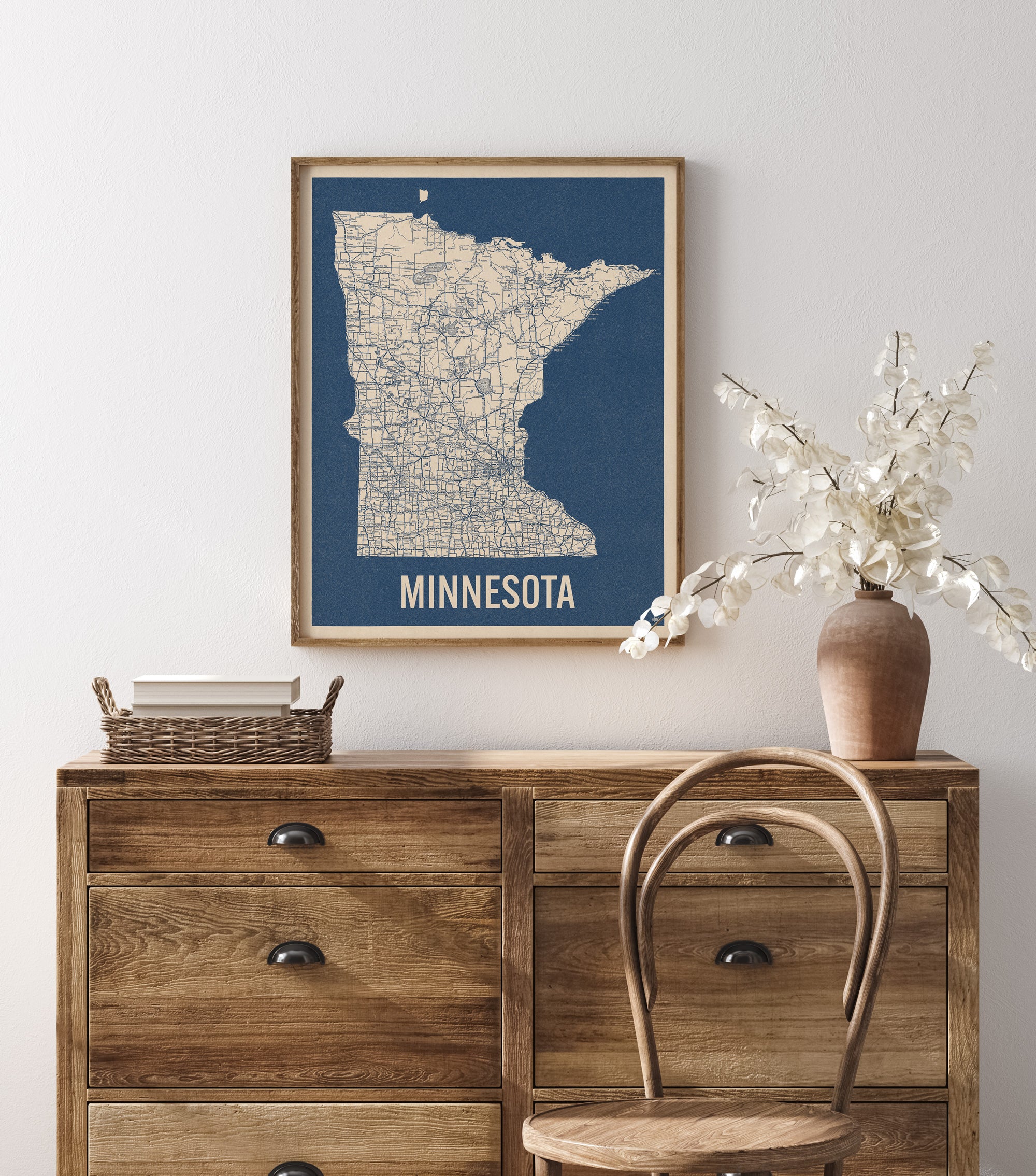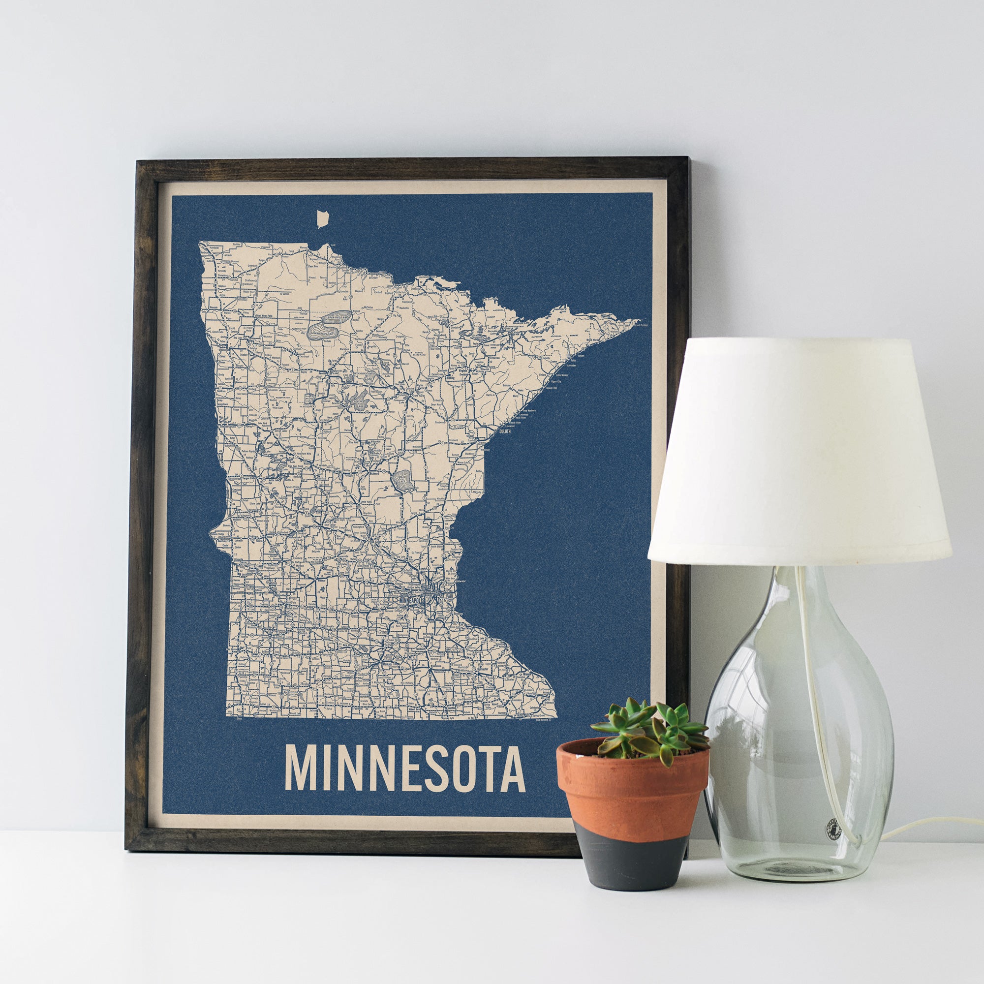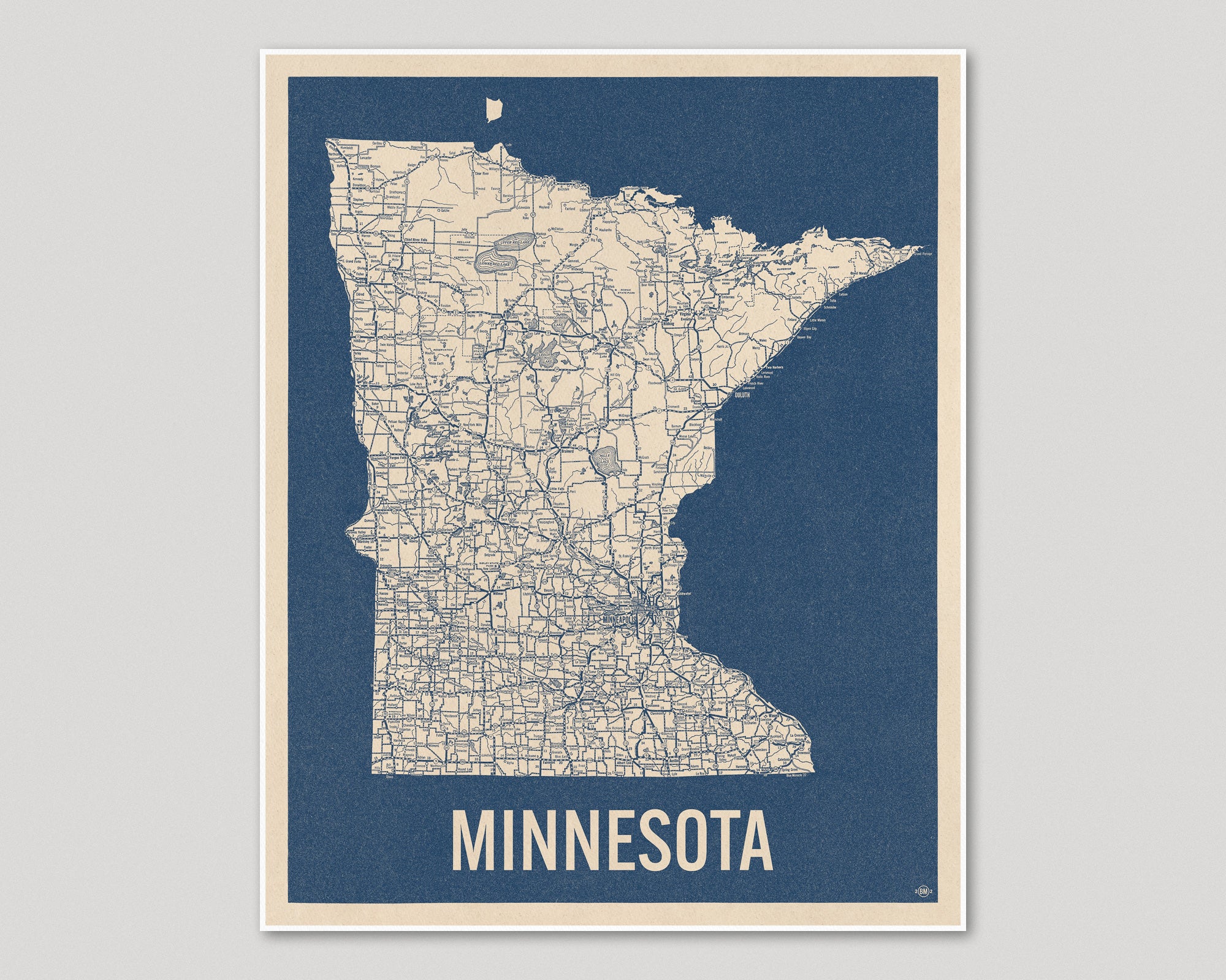 Minnesota Vintage Road Map, Blue on Beige #2