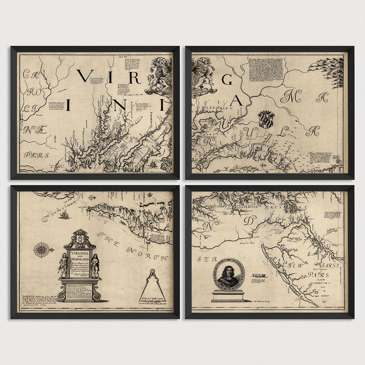 Maryland and Virginia Antique Map Print Set (1673)