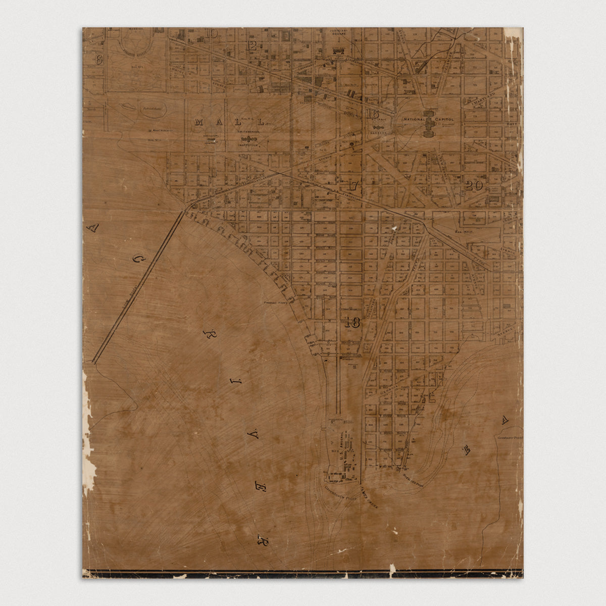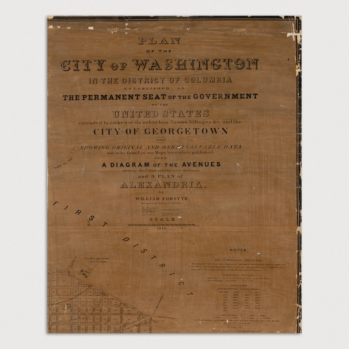 Archival print reproduction of an antique map of Washington, DC from 1876 by William Forsyth.