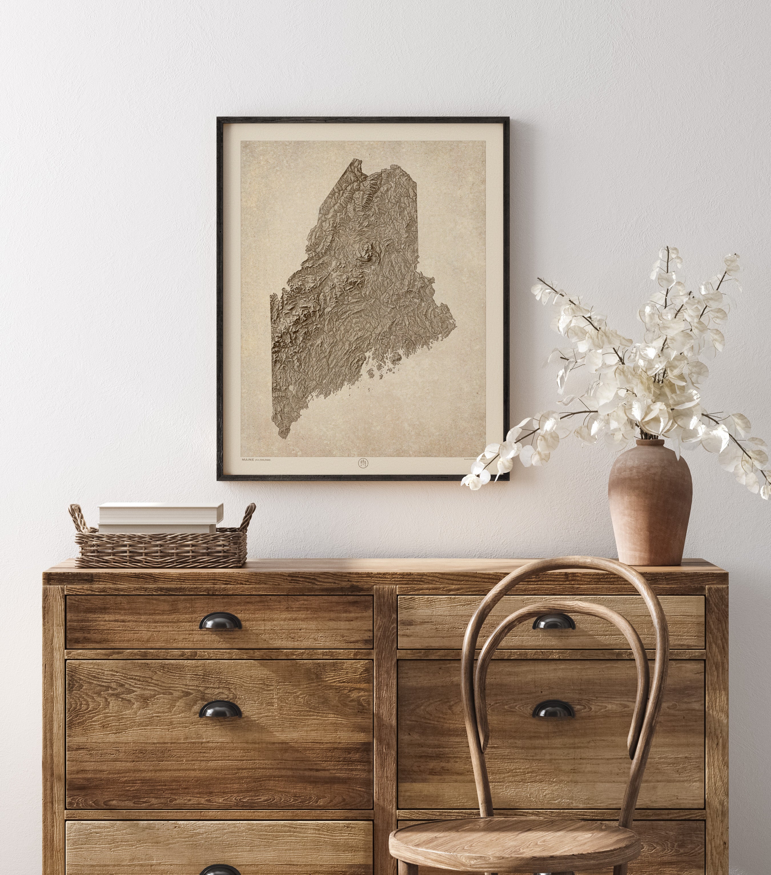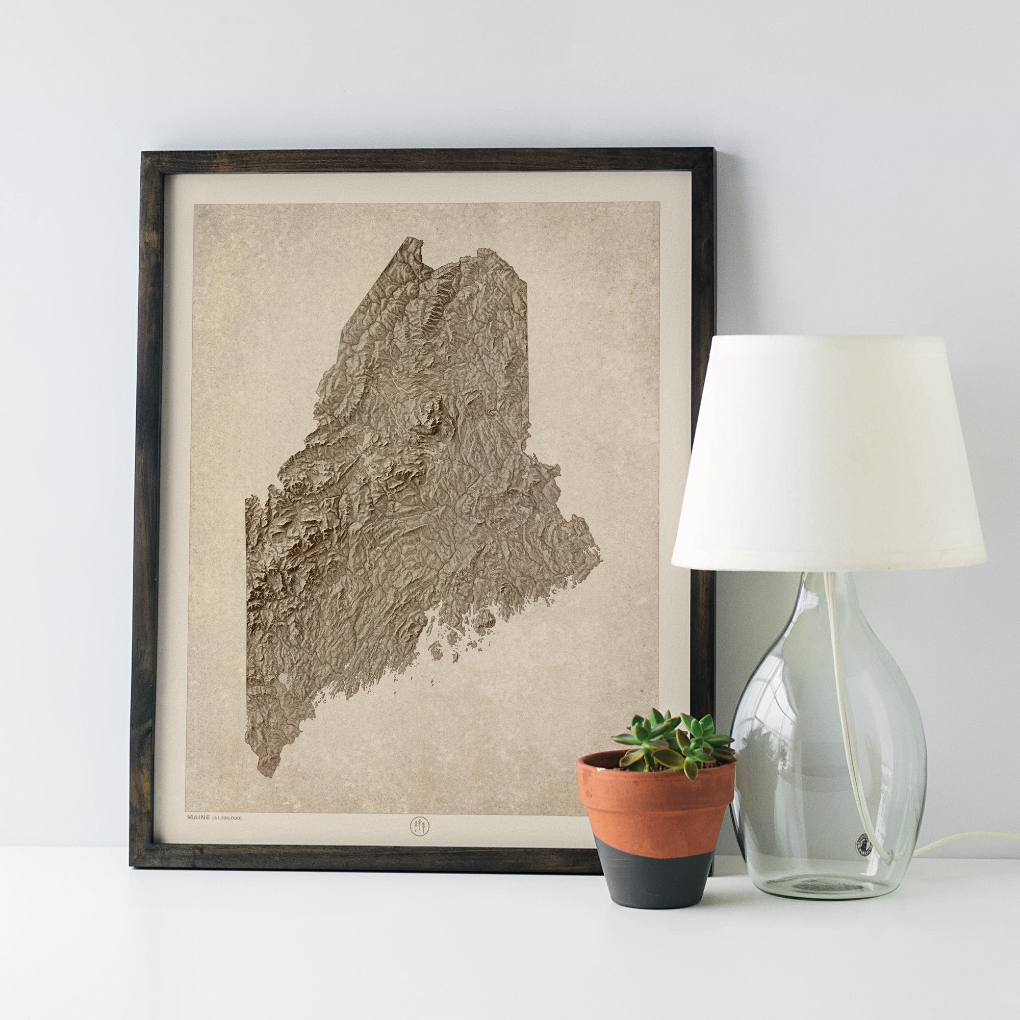 Maine Relief Map Art Print, Sepia, Vintage Style