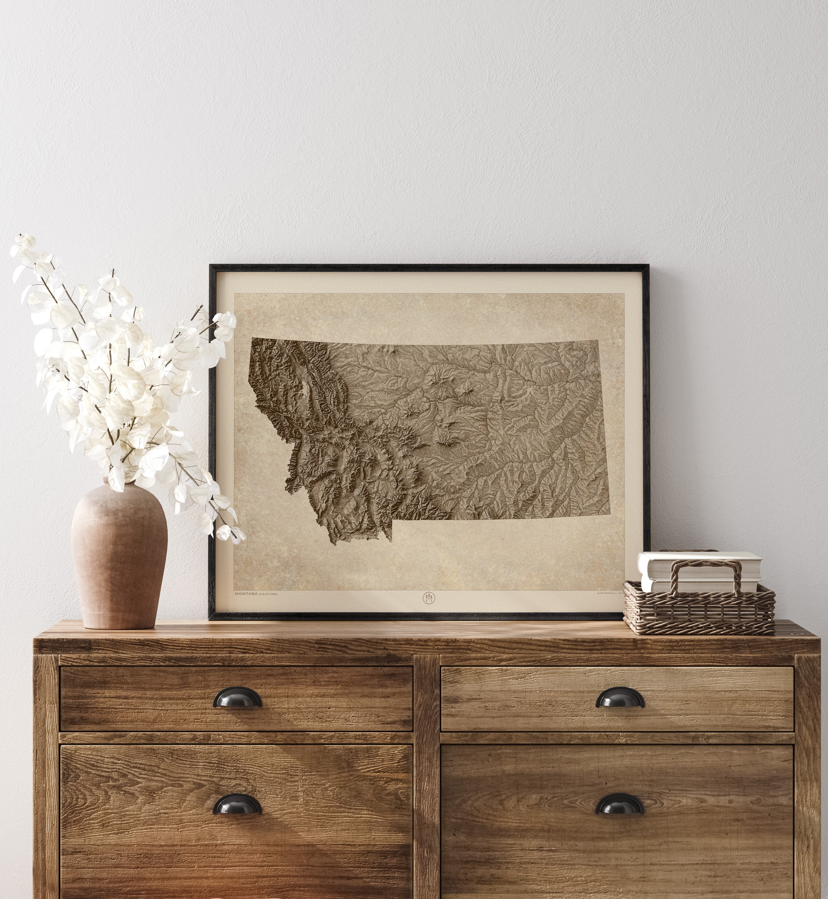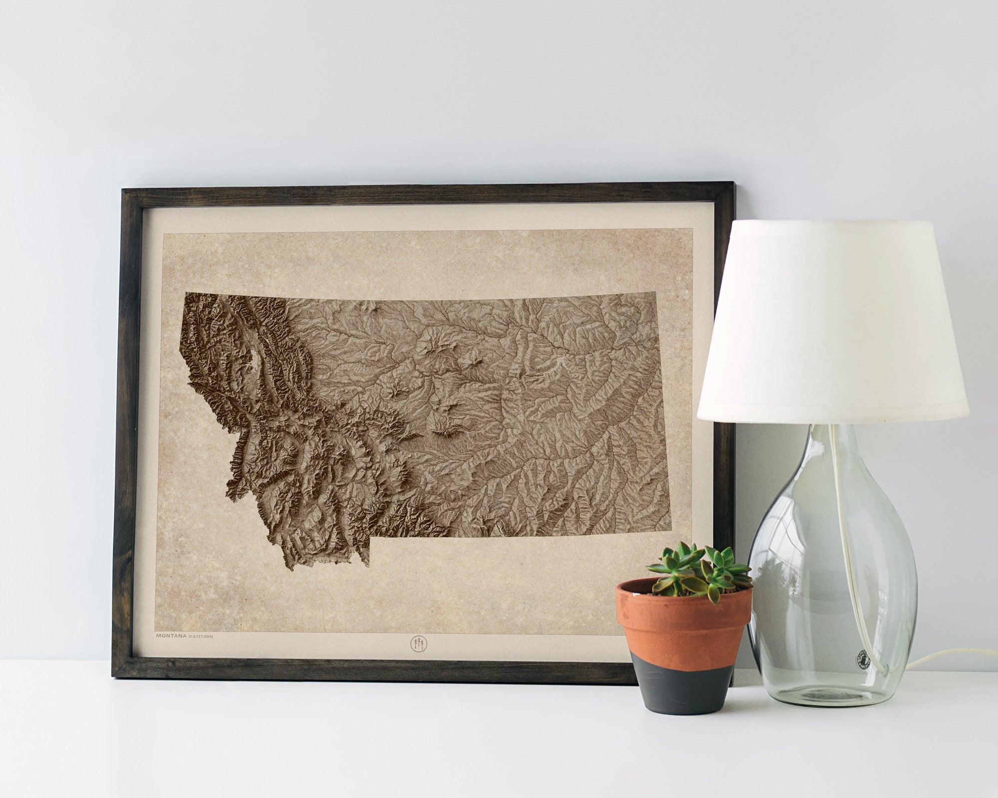 Montana Relief Map Art Print, Sepia, Vintage Style