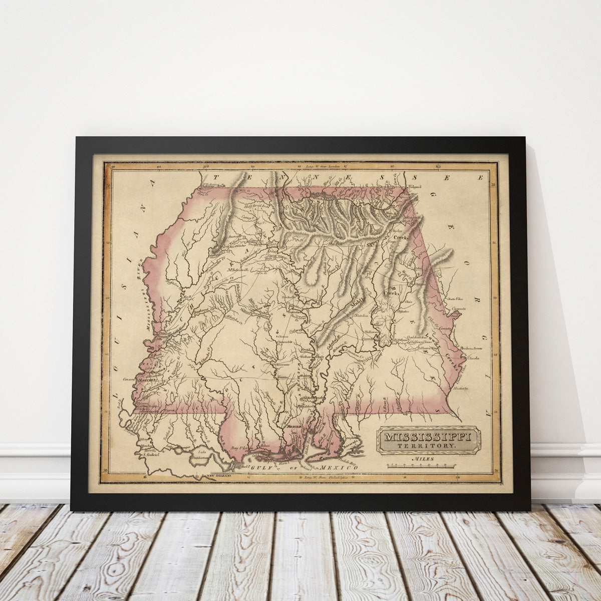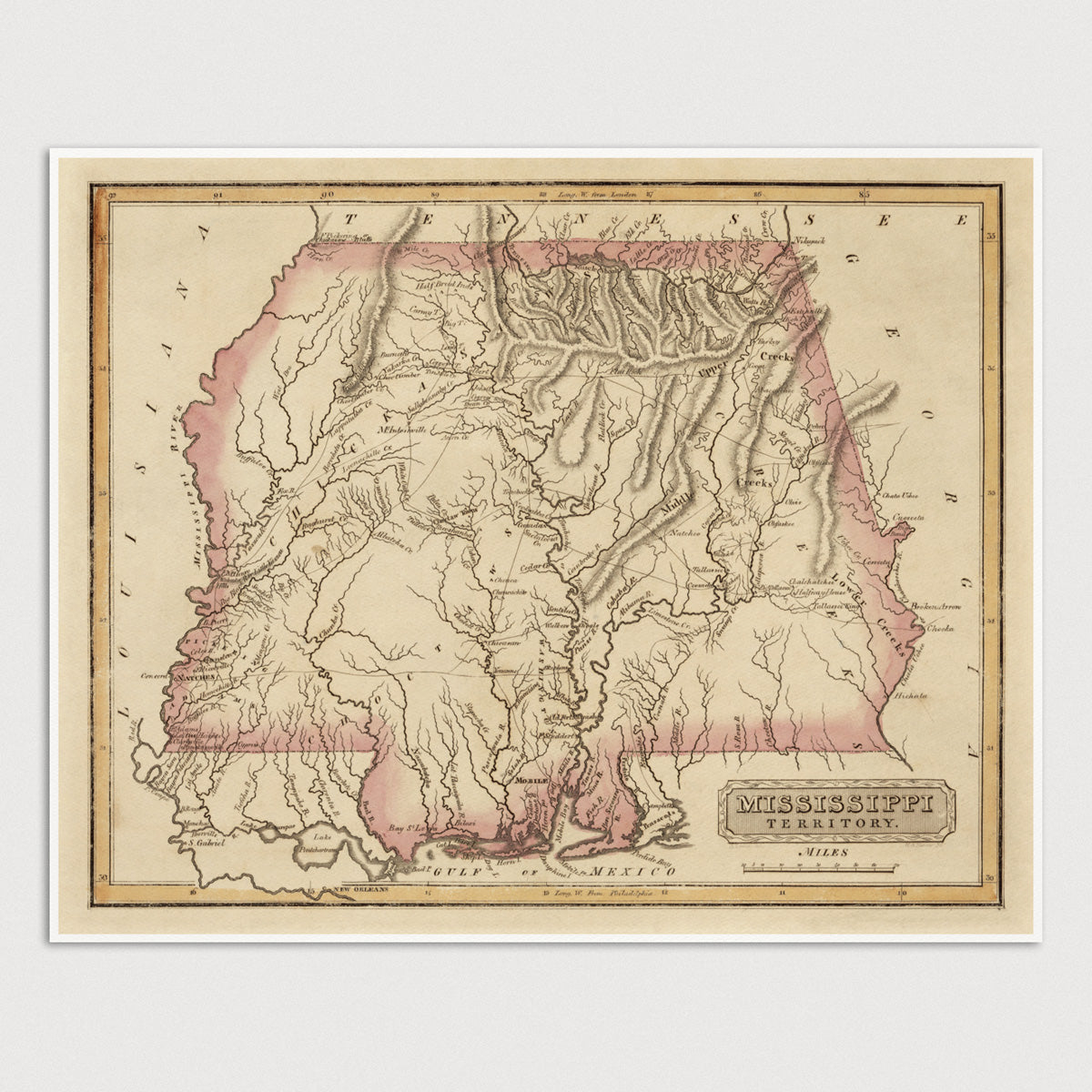 Alabama and Mississippi Antique Map Print (c1817)