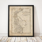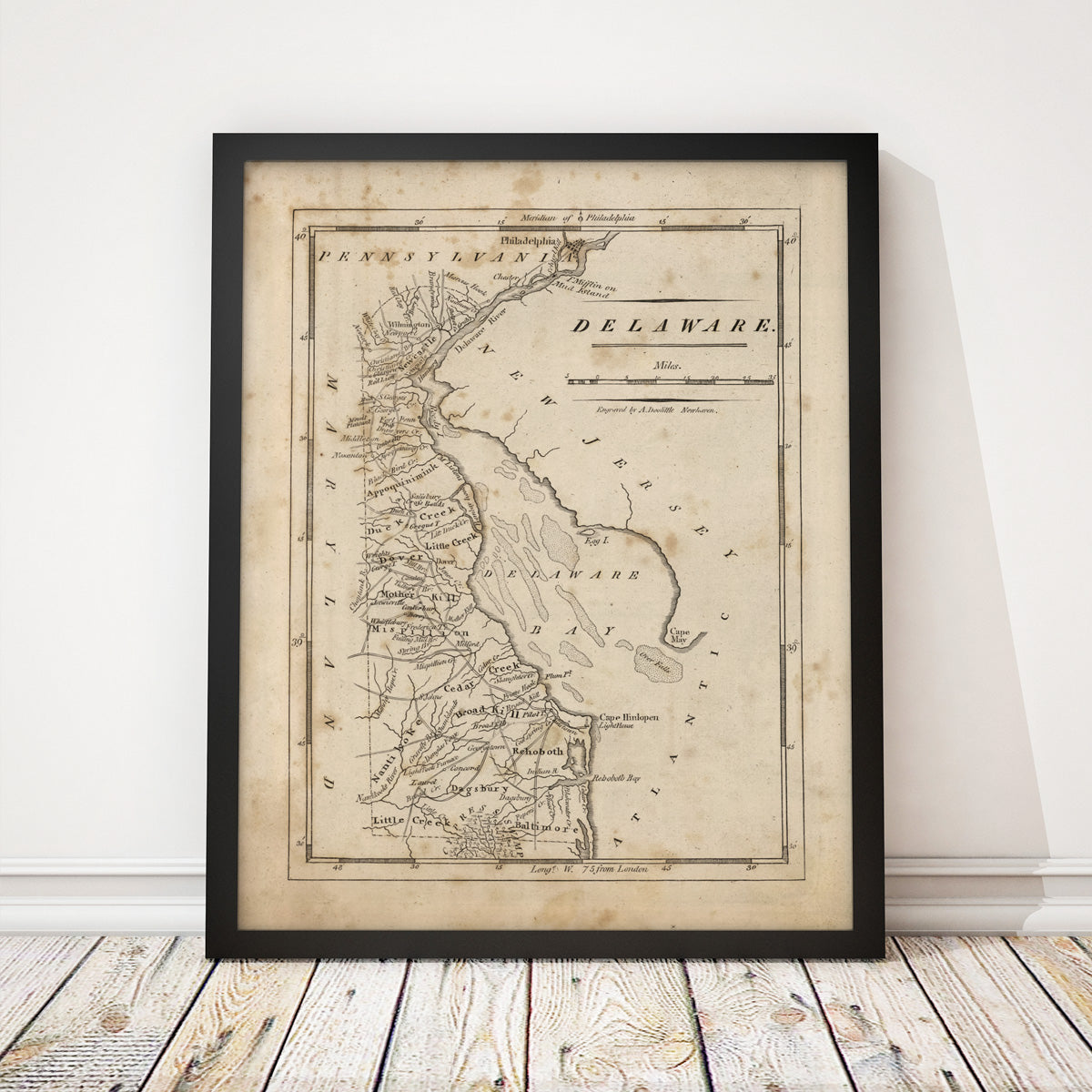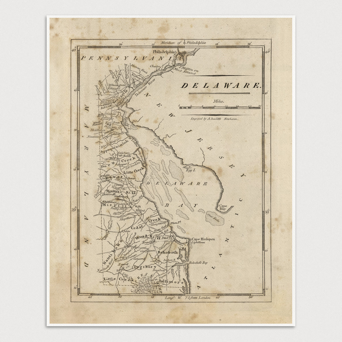 Archival print reproduction of an antique map of Delaware from 1816 by Mathew Carey.
