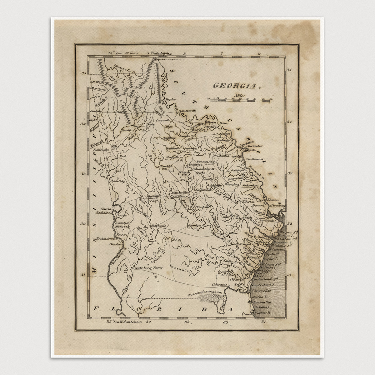 Georgia Antique Map Print (1816)