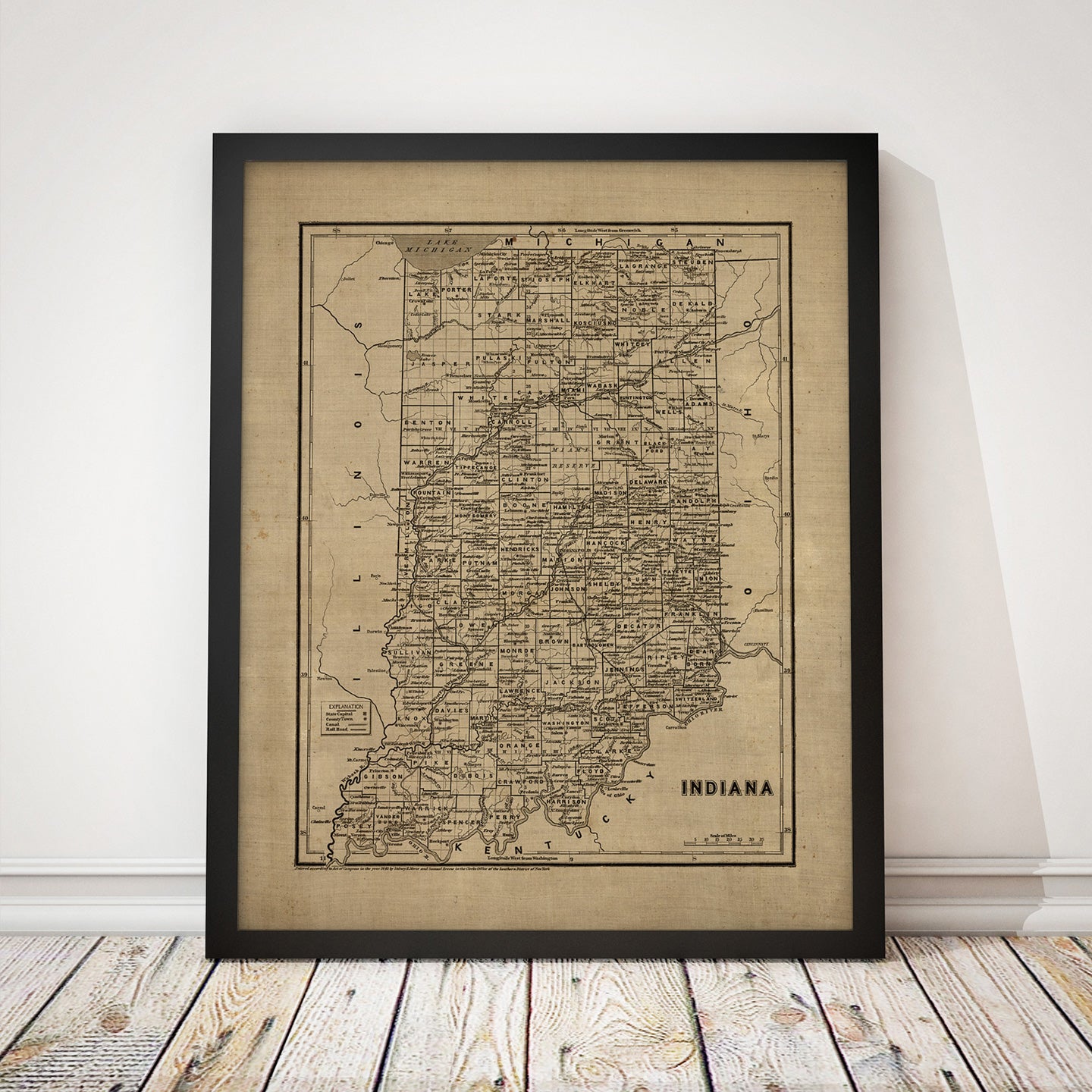 Indiana Antique Map Print (1842)
