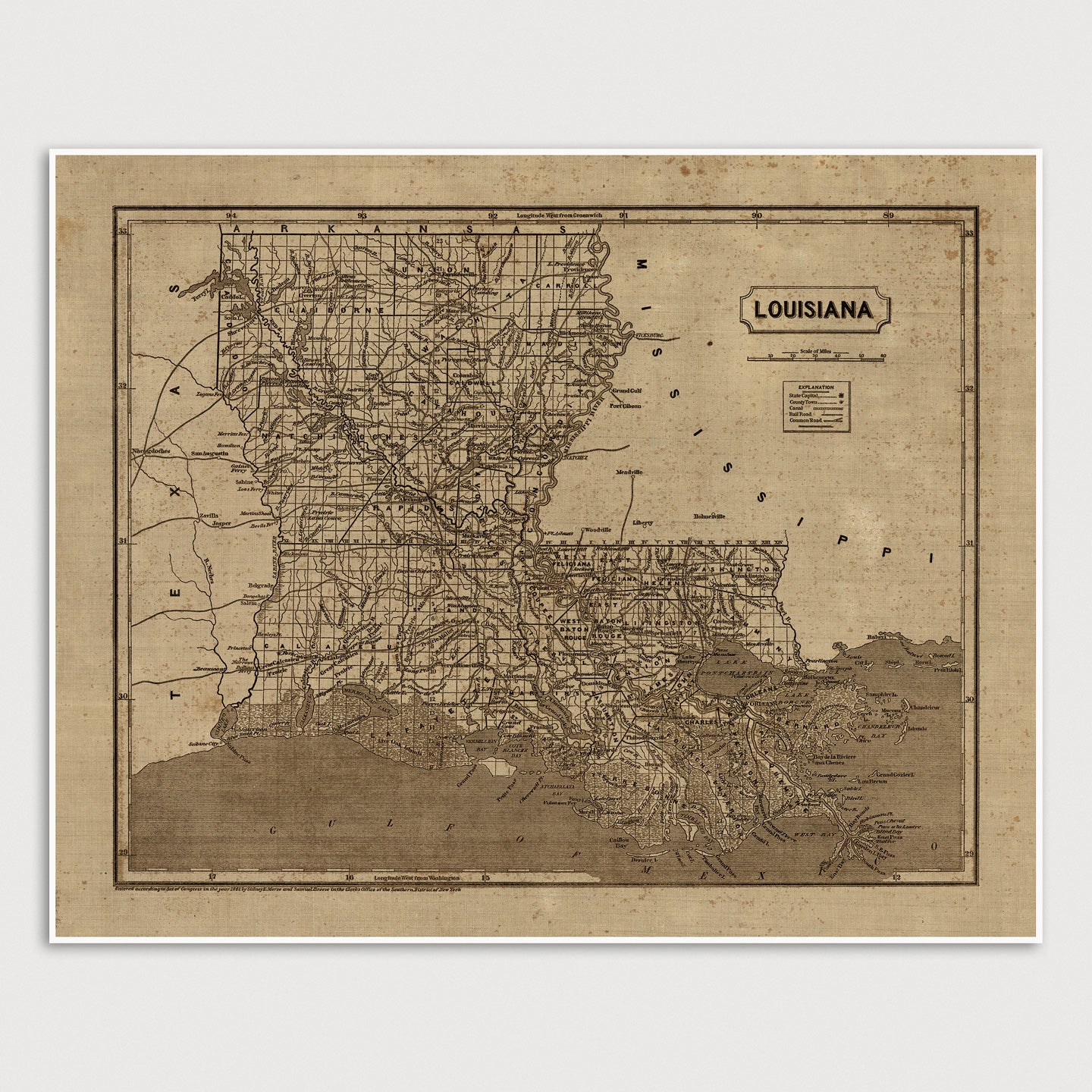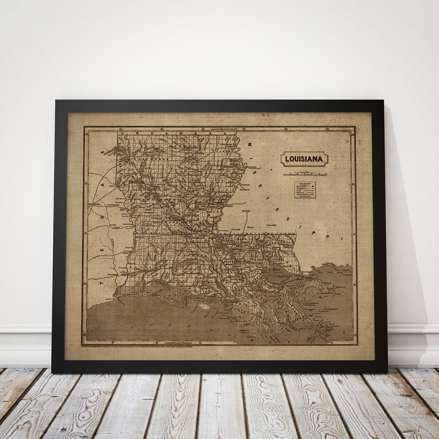 Archival print reproduction of an antique map of Louisiana from 1842 by Sidney Morse and Samuel Breese.
