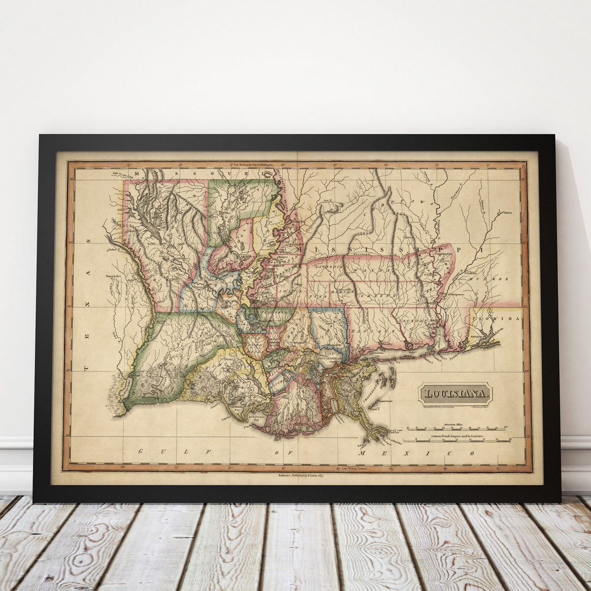 Archival print reproduction of an antique map of Louisiana from c1817 by Fielding Lucas.