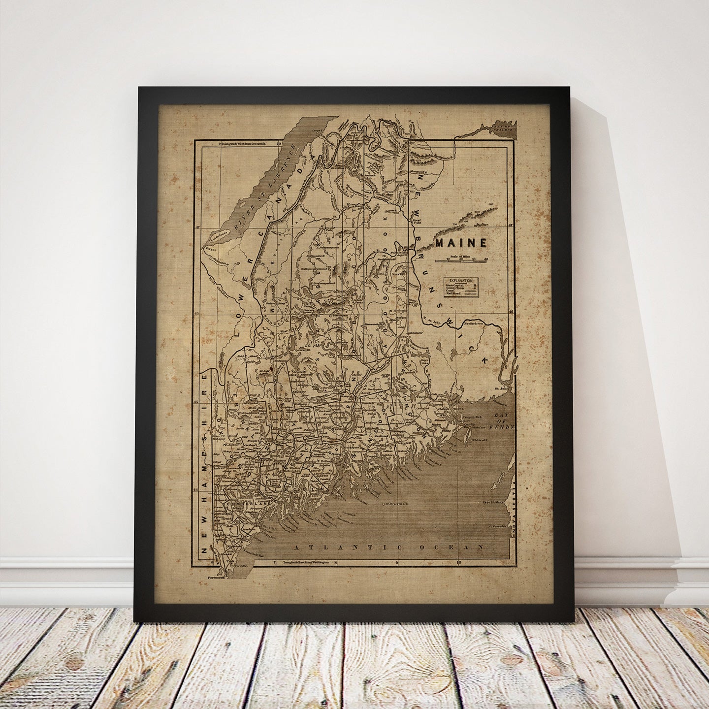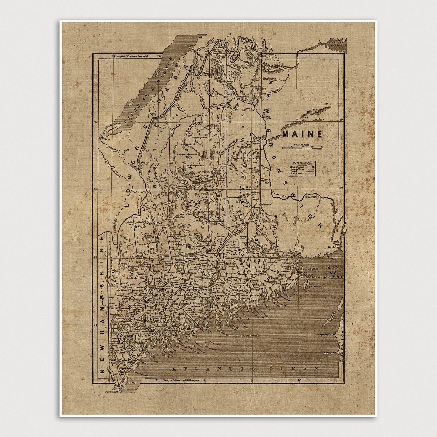 Archival print reproduction of an antique map of Maine from 1842 by Sidney Morse and Samuel Breese.