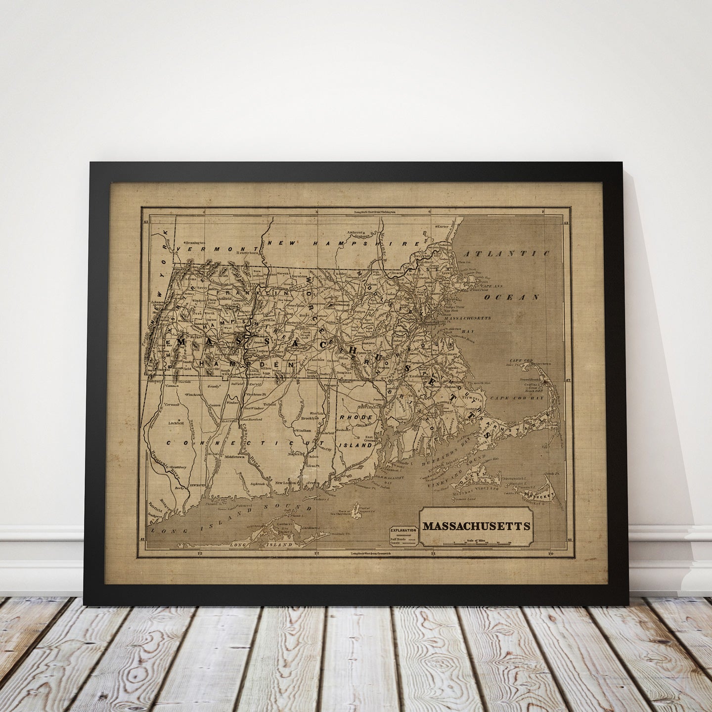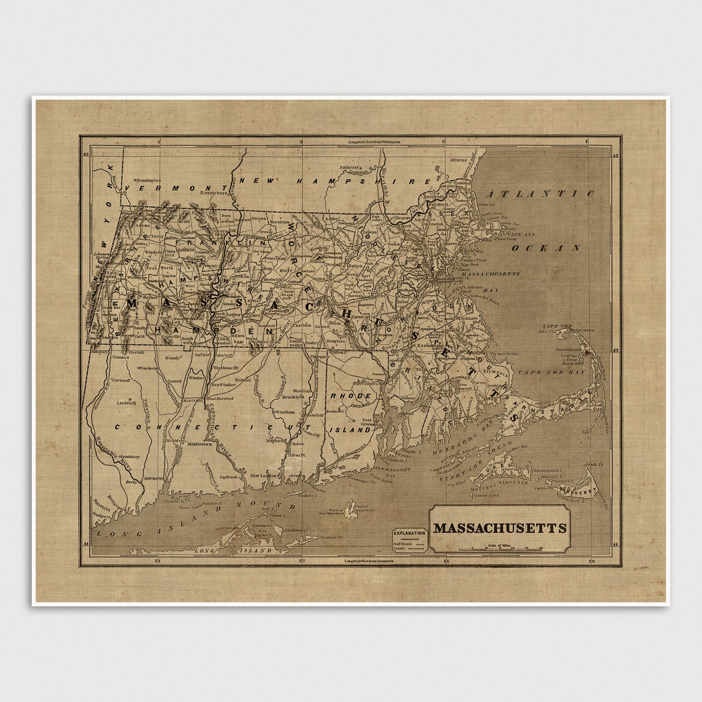 Archival print reproduction of an antique map of Massachusetts from 1842 by Sidney Morse and Samuel Breese.