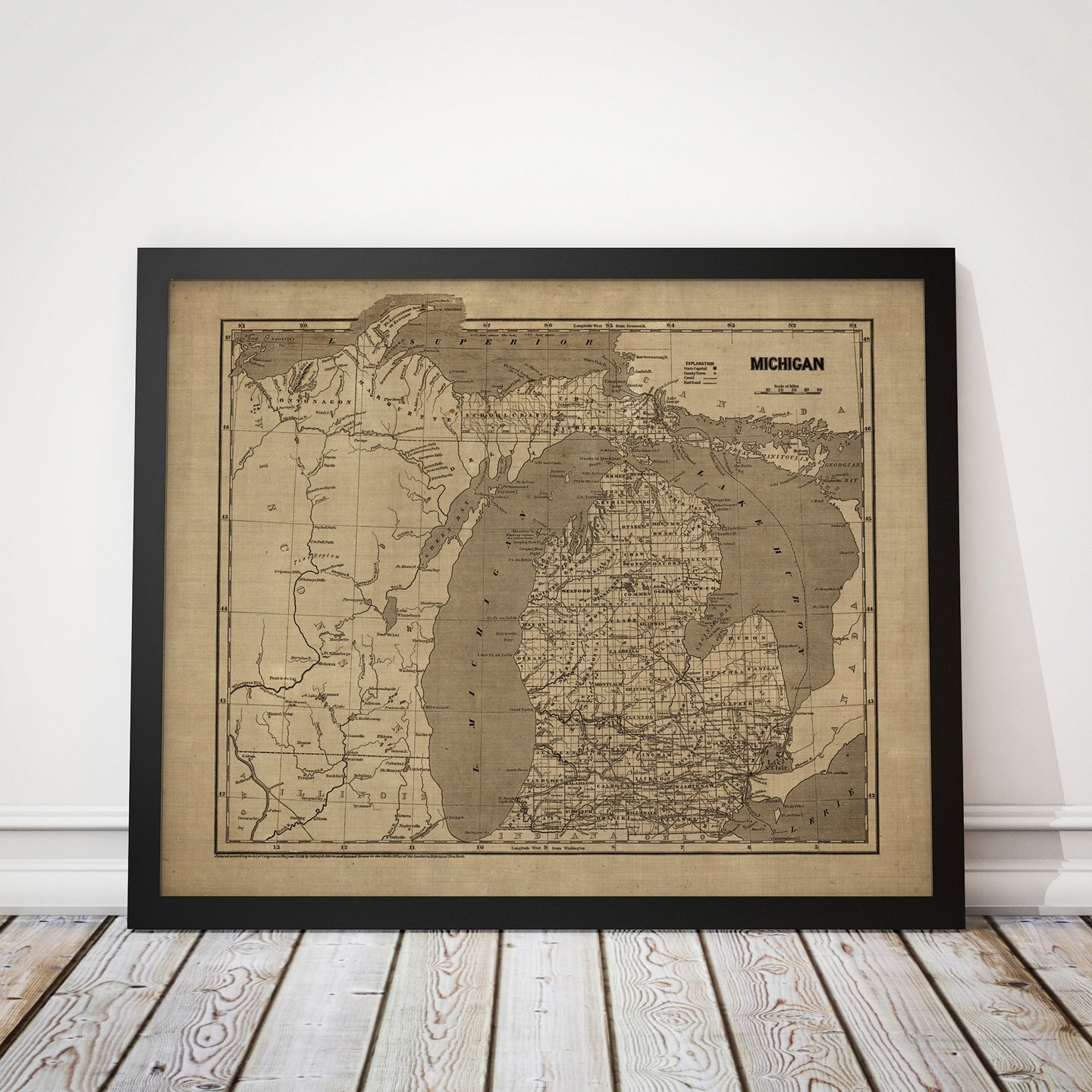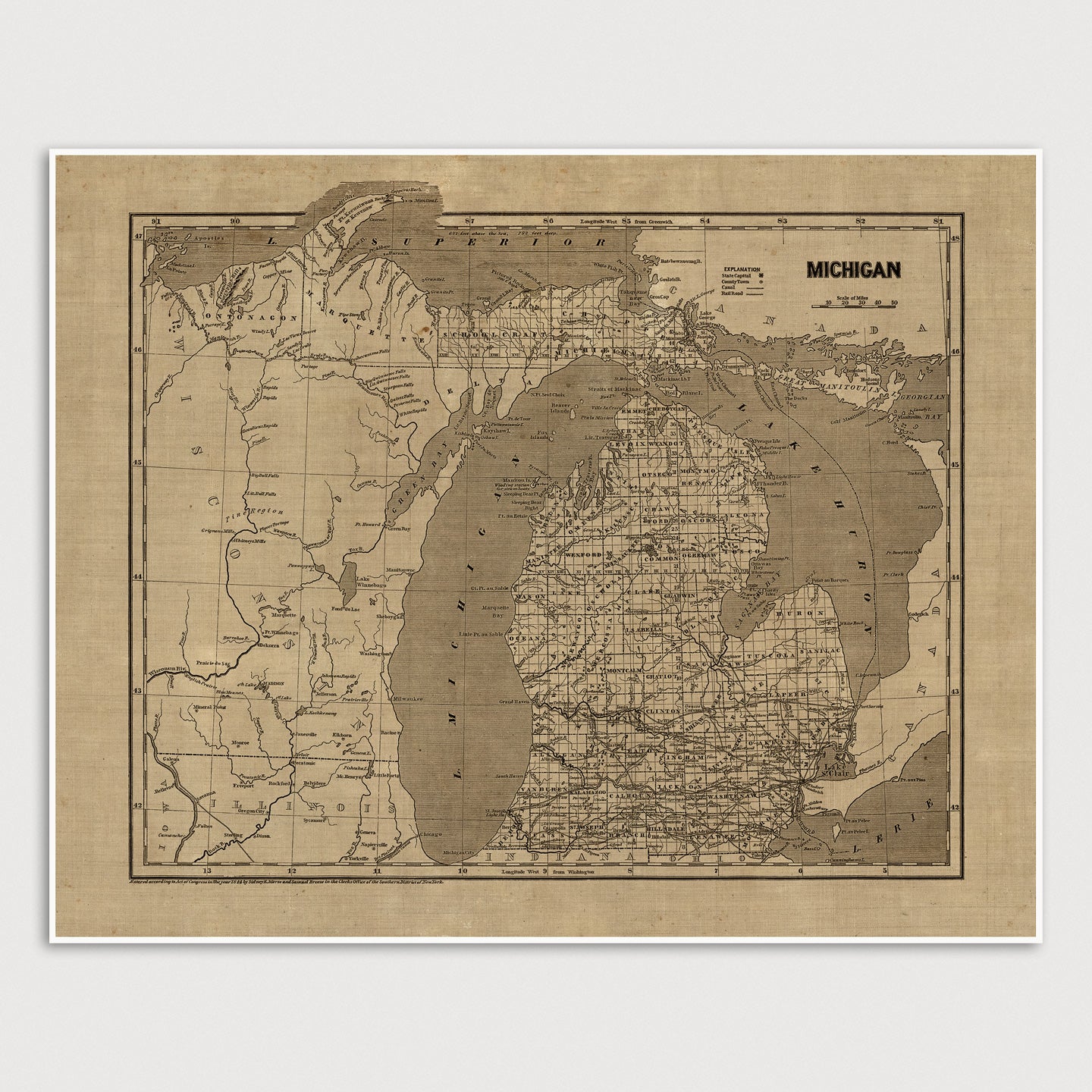 Archival print reproduction of an antique map of Michigan from 1842 by Sidney Morse and Samuel Breese.
