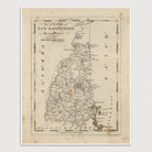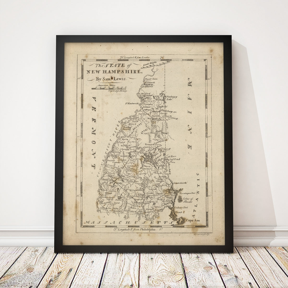 Archival print reproduction of an antique map of New Hampshire from 1816 by Mathew Carey.