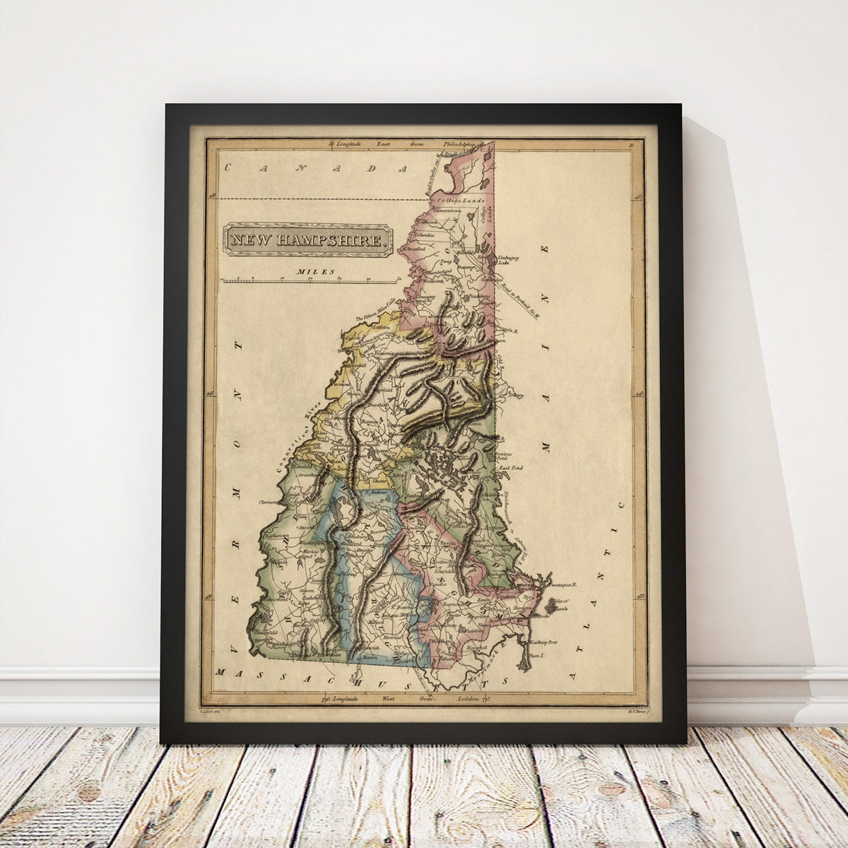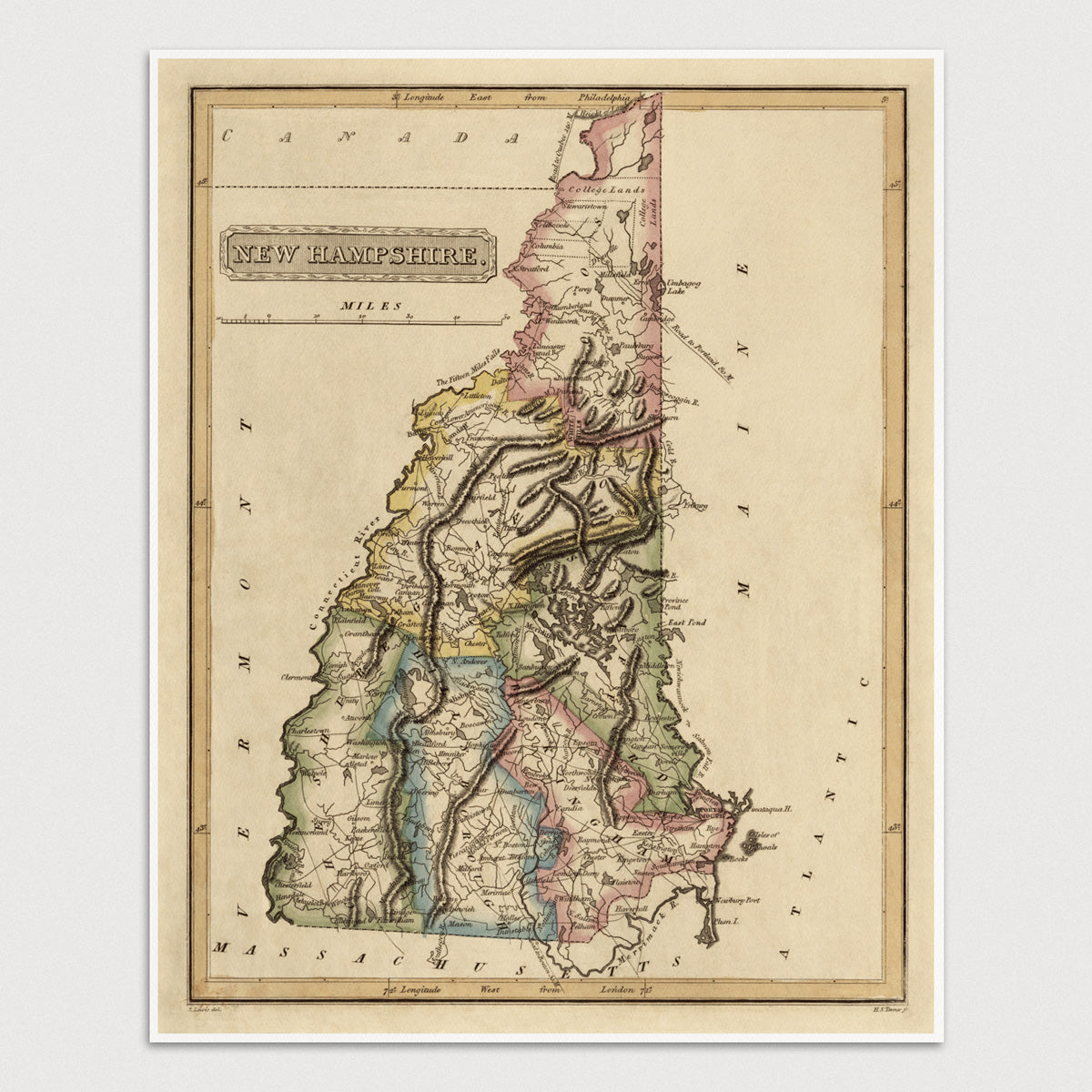 Archival print reproduction of an antique map of New Hampshire from c1817 by Fielding Lucas.