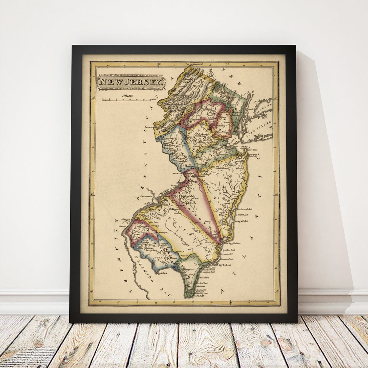 Archival print reproduction of an antique map of New Jersey from c1817 by Fielding Lucas.