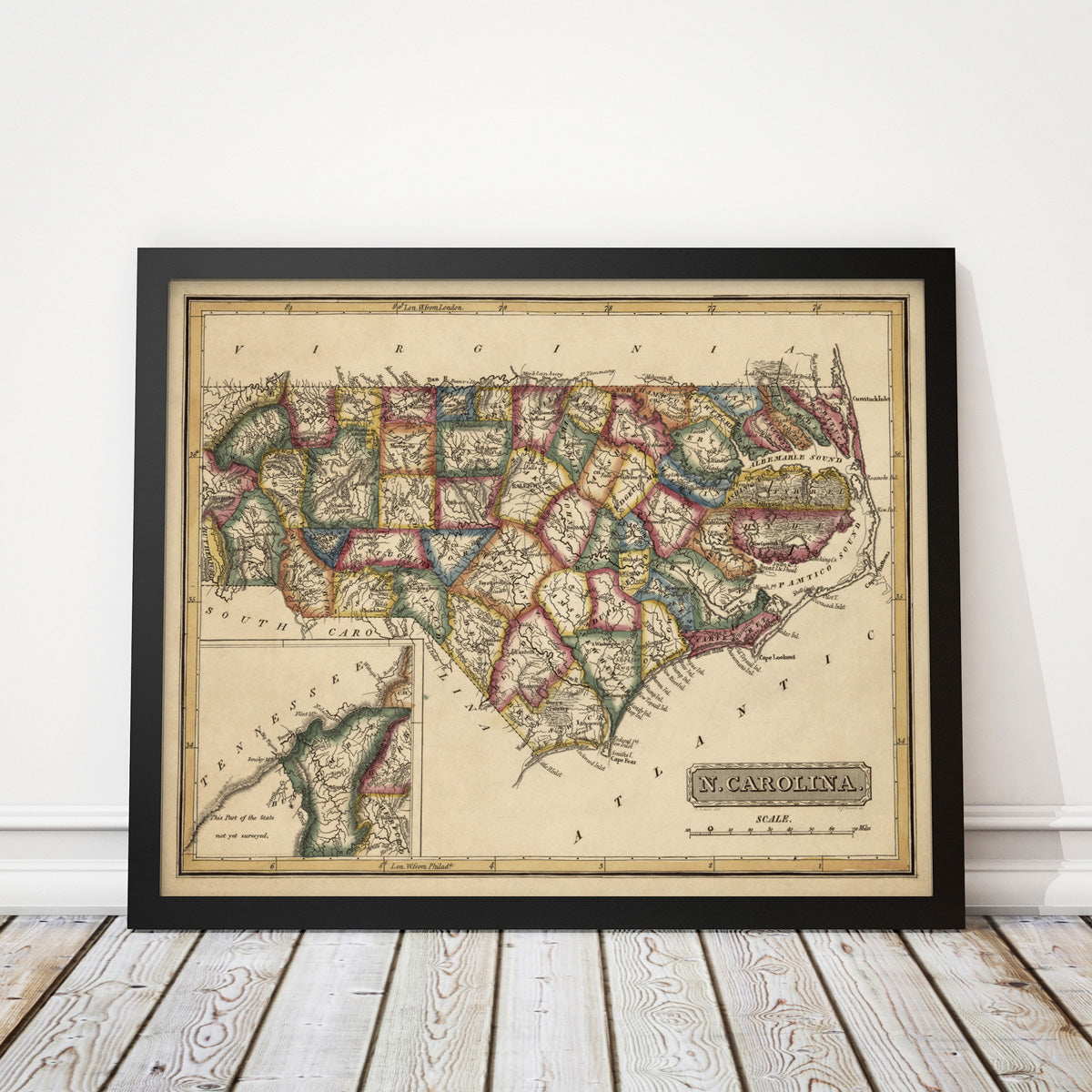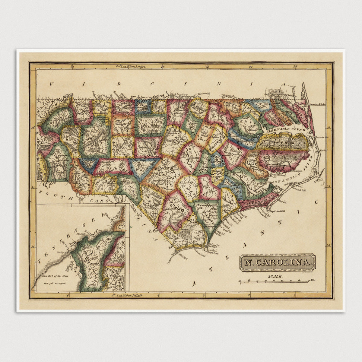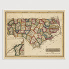 Archival print reproduction of an antique map of North Carolina from c1817 by Fielding Lucas.