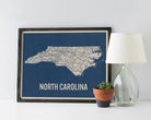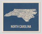 North Carolina Vintage Road Map, Blue on Beige #2
