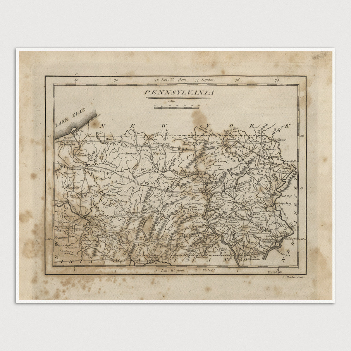 Pennsylvania Antique Map Print (1816)