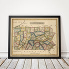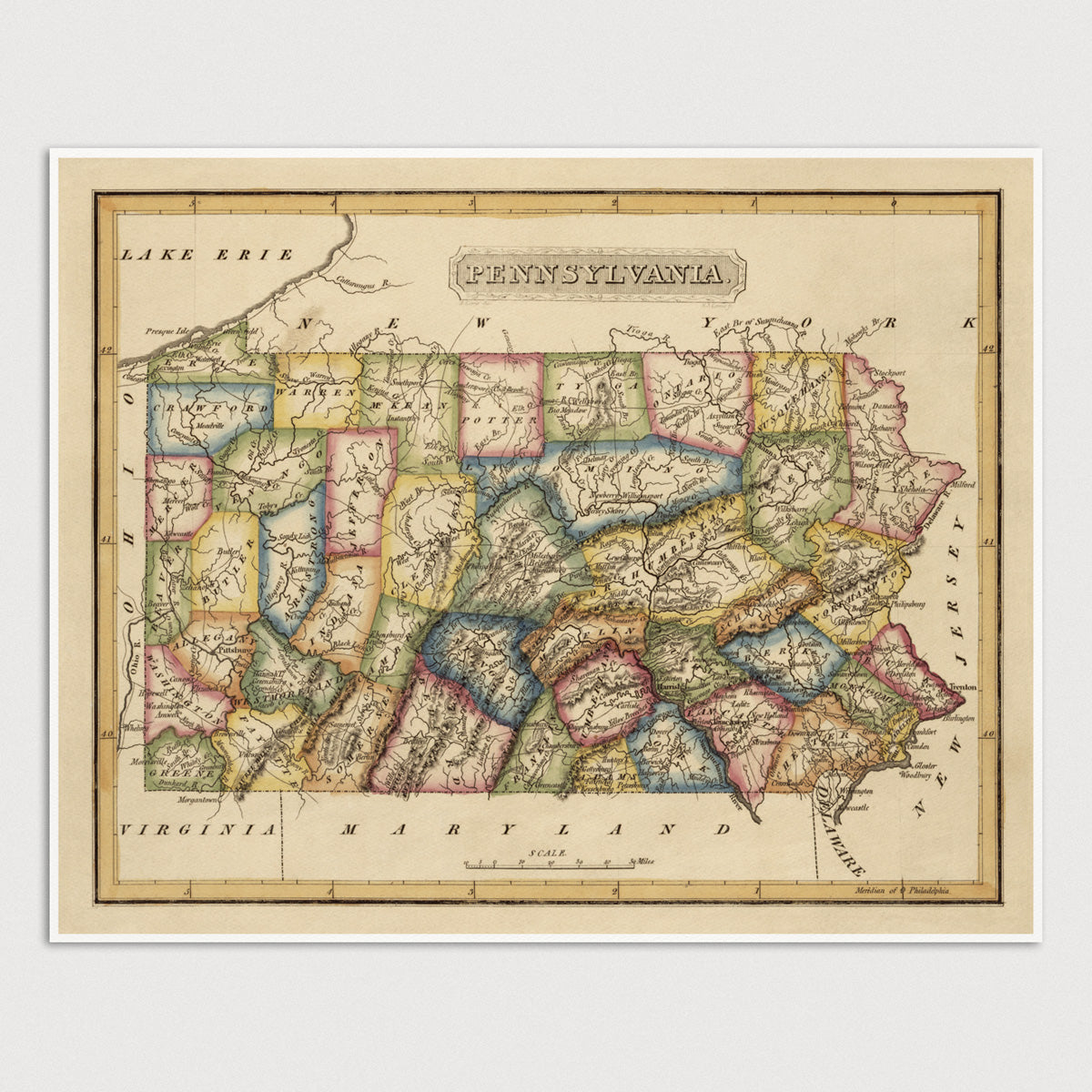 Archival print reproduction of an antique map of Pennsylvania from c1817 by Fielding Lucas.