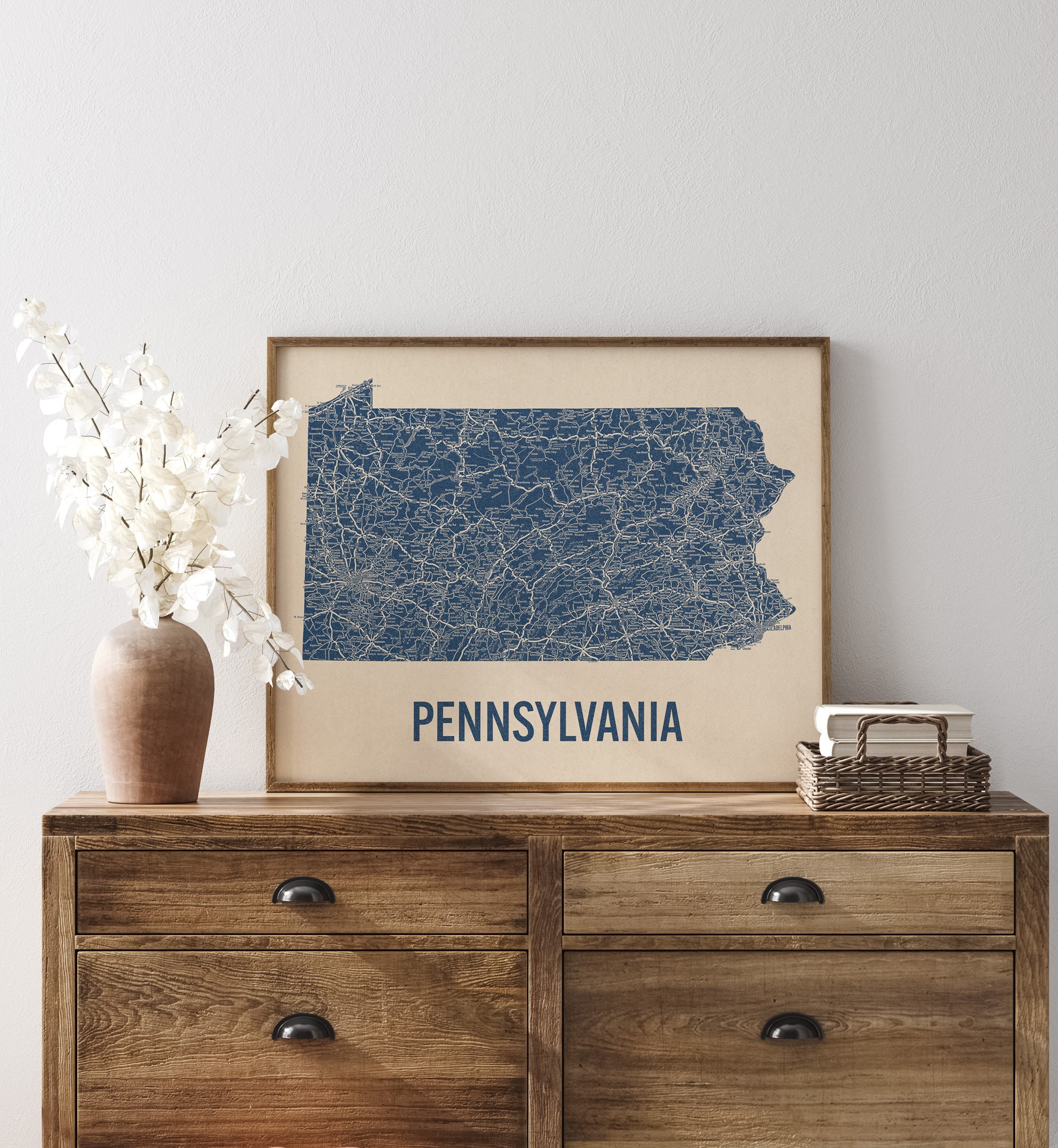 Pennsylvania Vintage Road Map, Blue on Beige #1