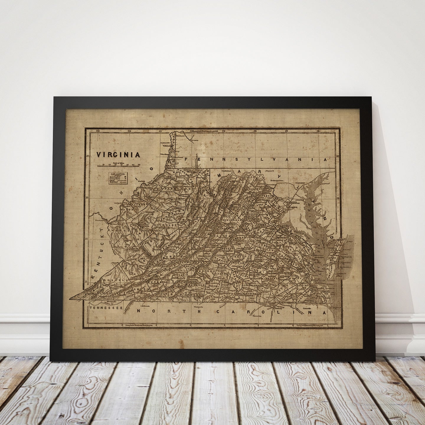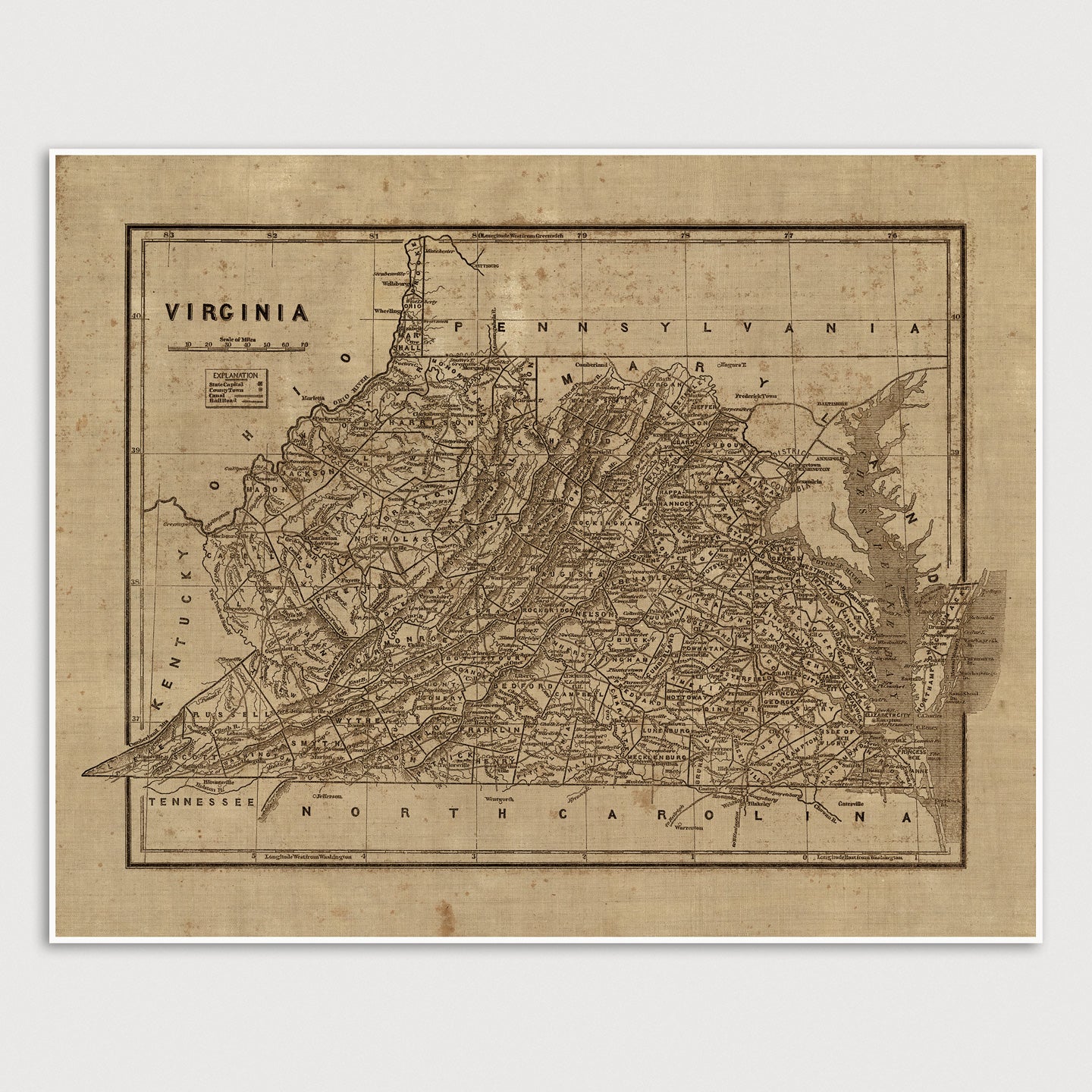 Archival print reproduction of an antique map of Virginia and West Virginia from 1842 by Sidney Morse and Samuel Breese.
