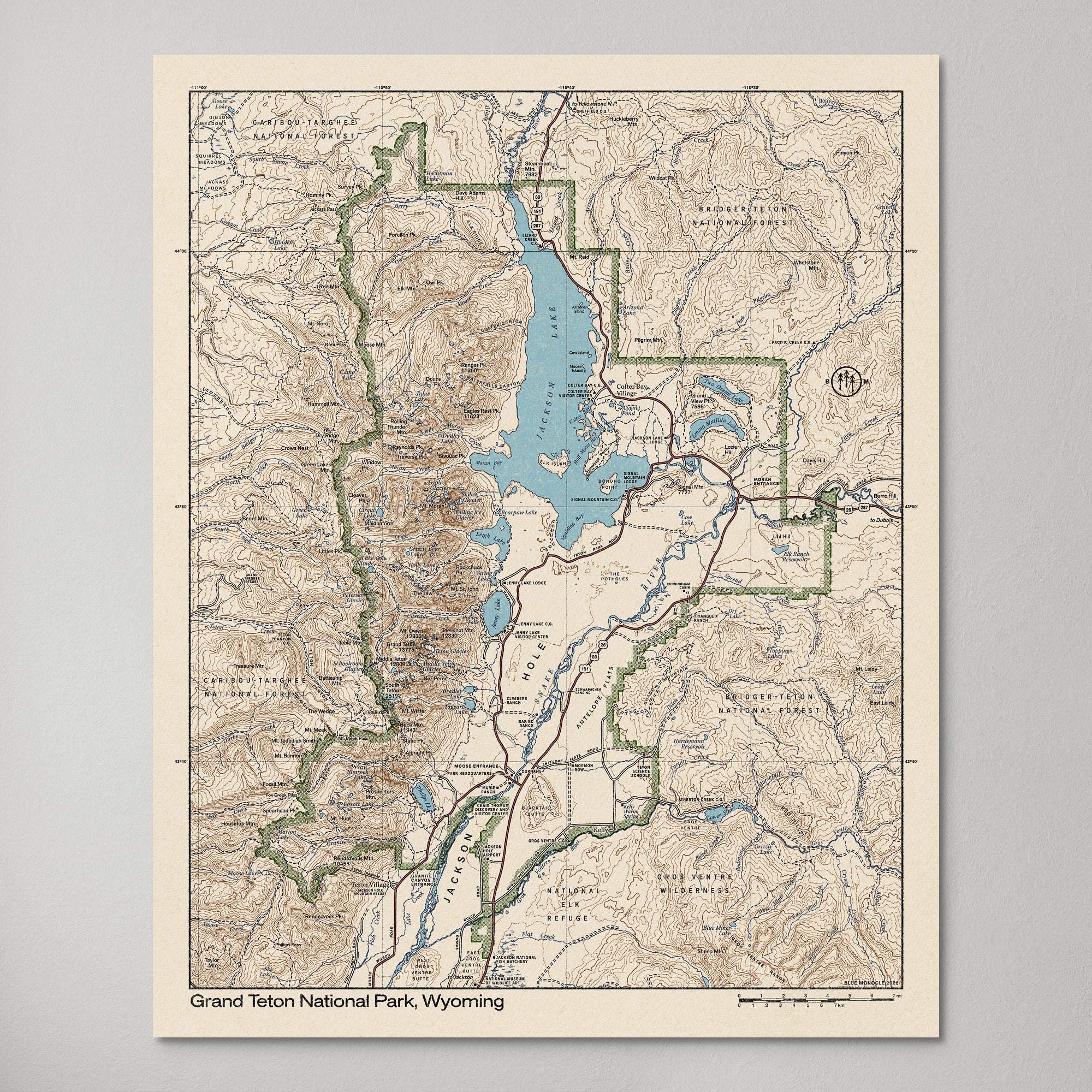 Grand Teton National Park Topographic Map, Wyoming, Retro Style