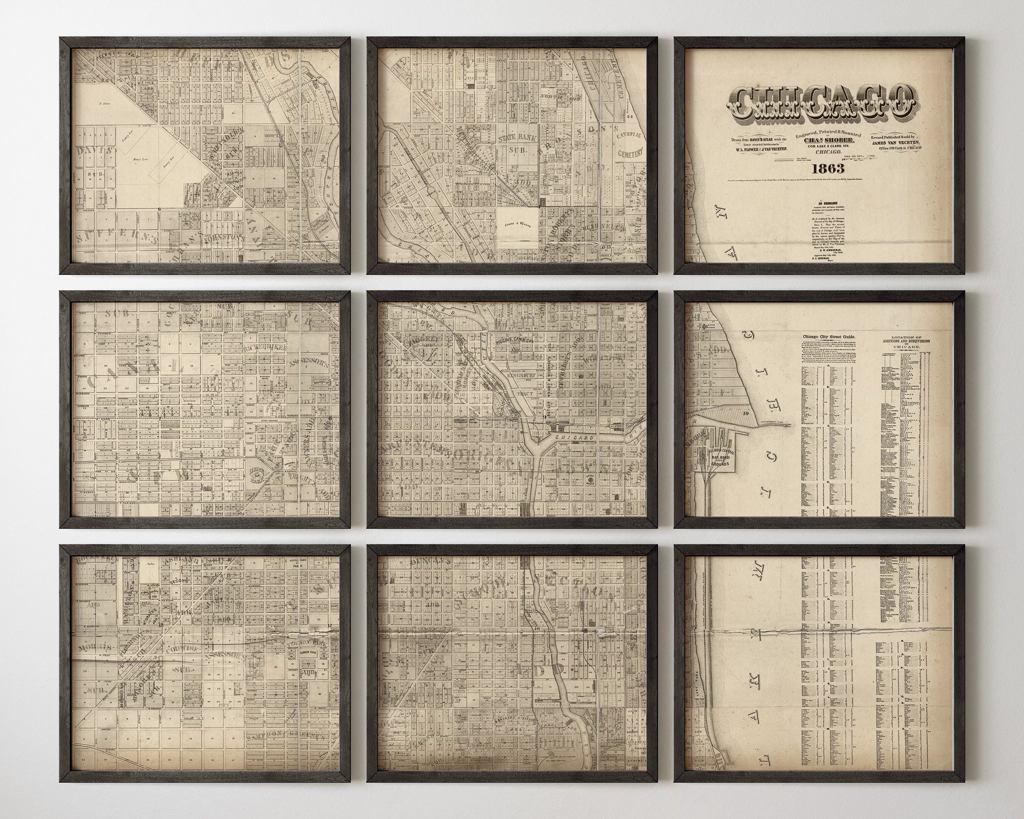 Chicago Antique Map Print Set (1863)