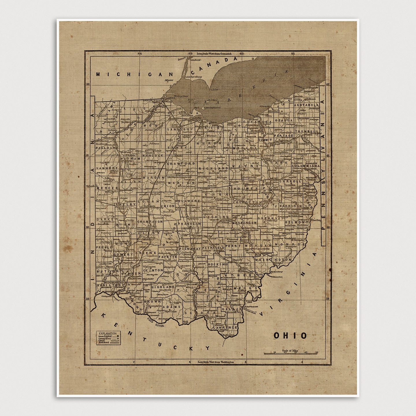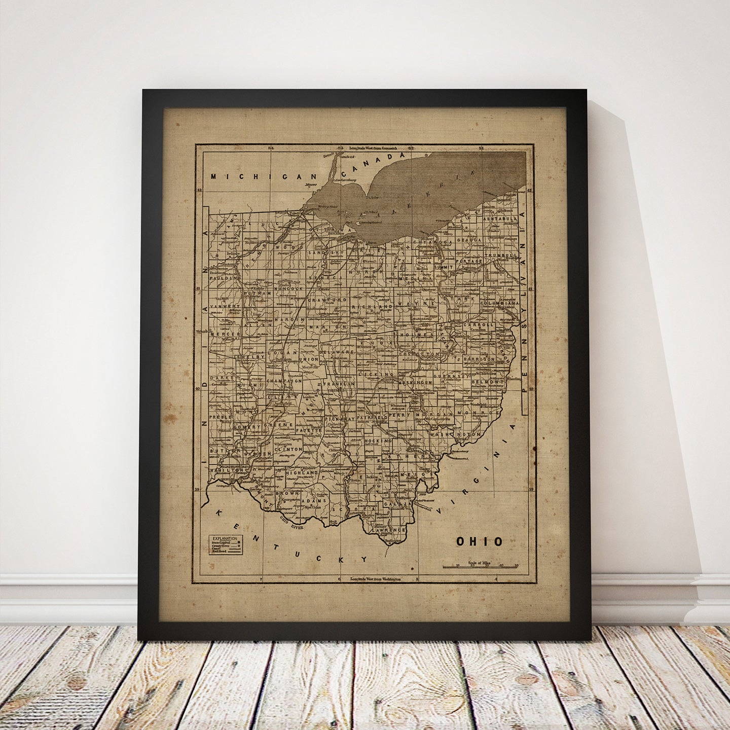 Archival print reproduction of an antique map of Ohio from 1842 by Sidney Morse and Samuel Breese.