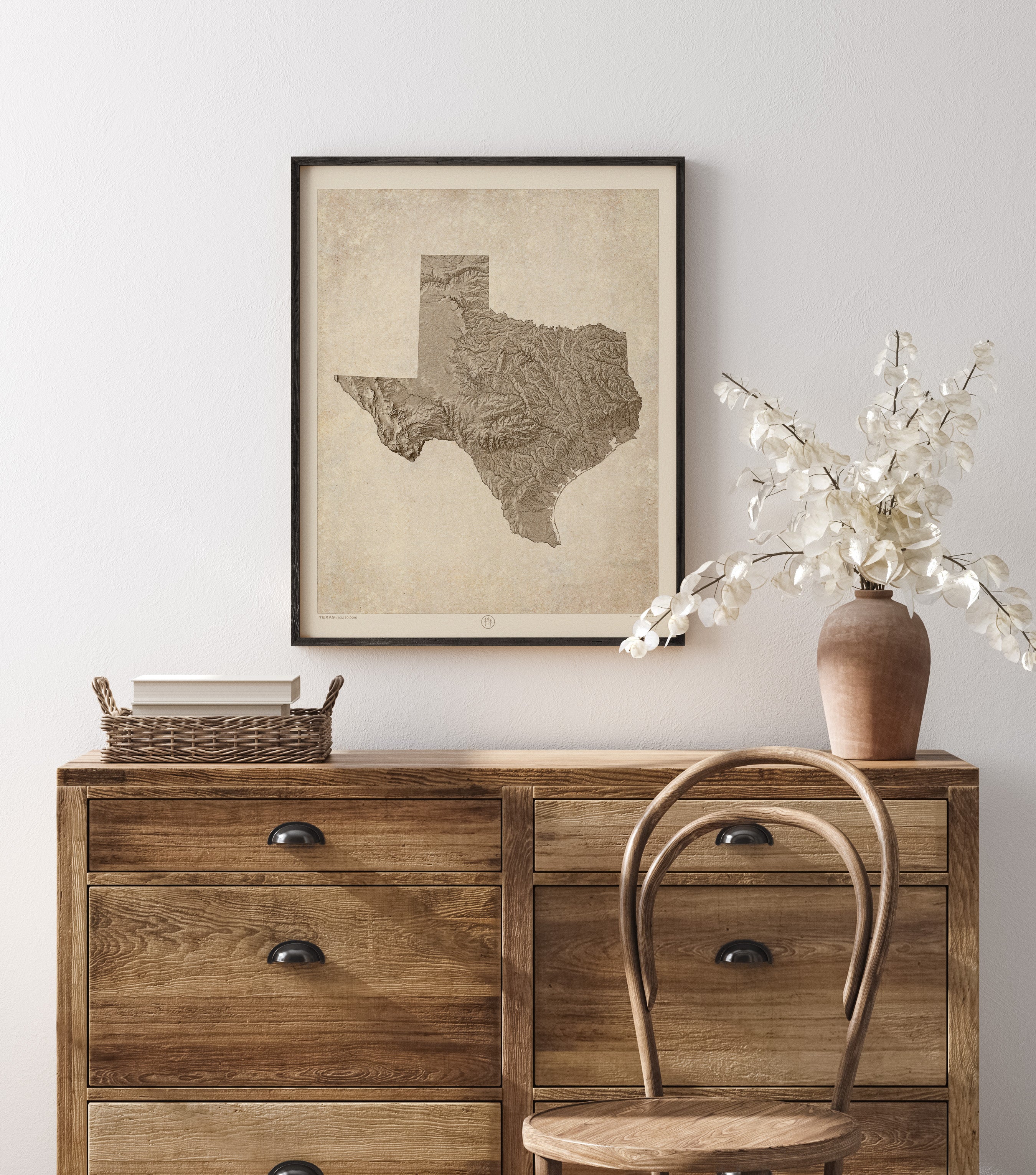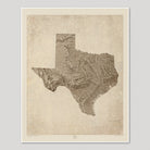 Texas Relief Map Art Print, Sepia, Vintage Style