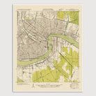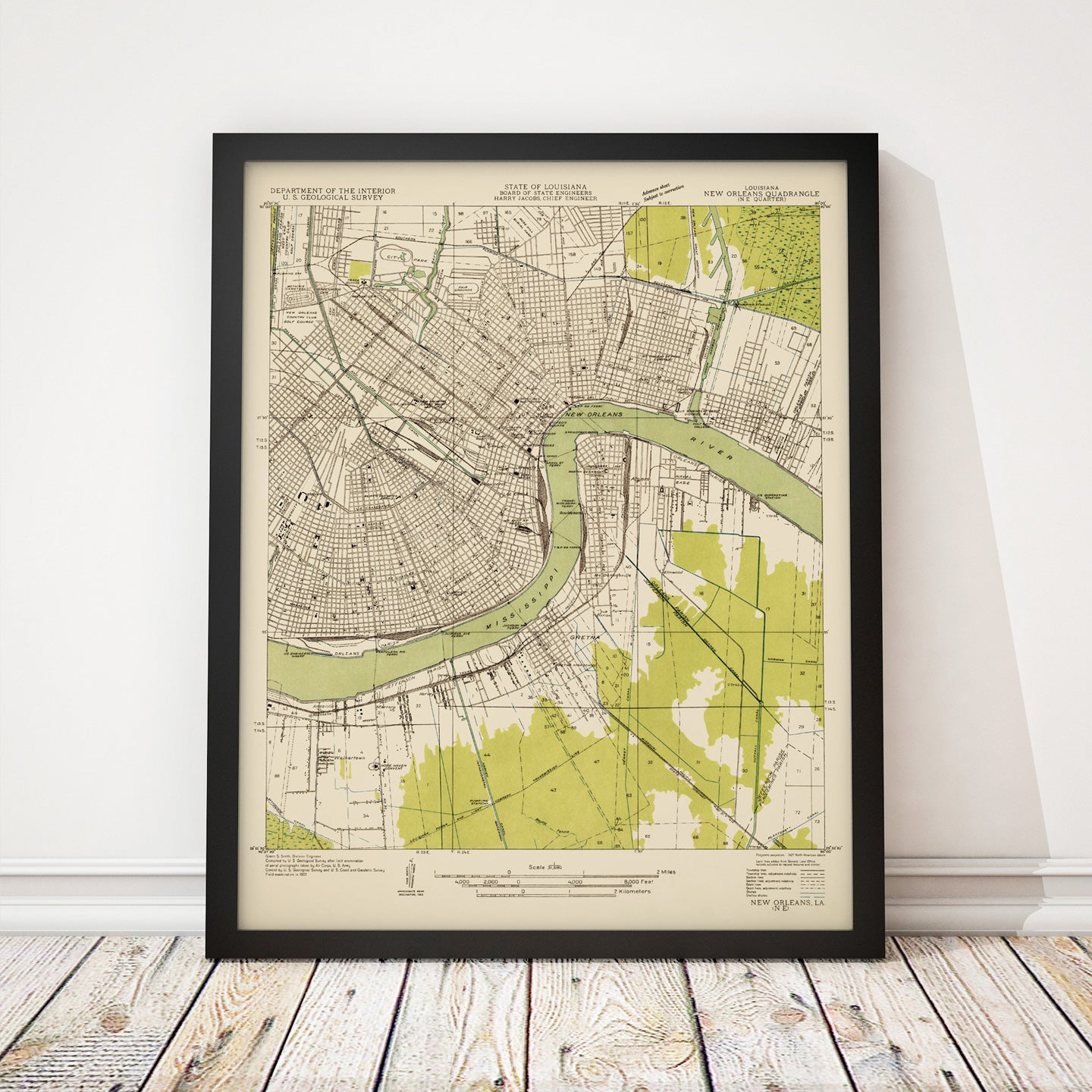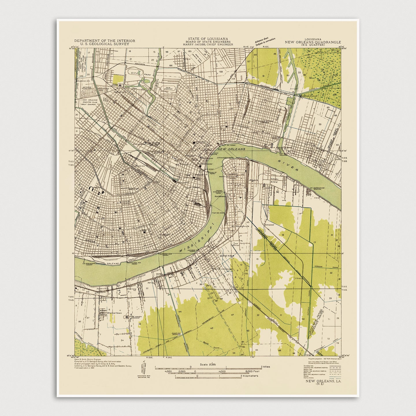 Archival print reproduction of an antique map of New Orleans, Louisiana from 1932 by the US Geological Survey.